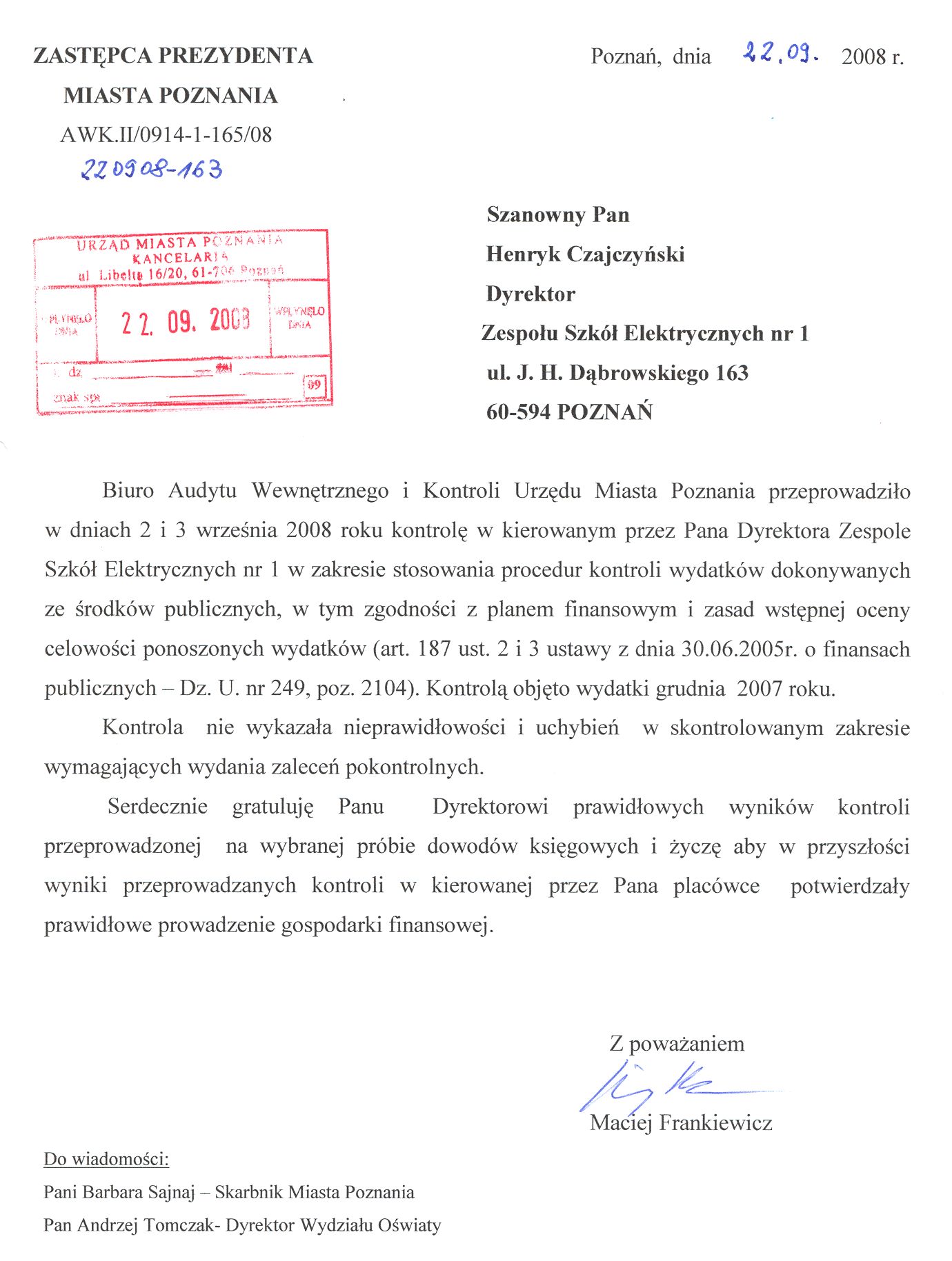 Kontrola: AWK.II/0914-1-165/08
