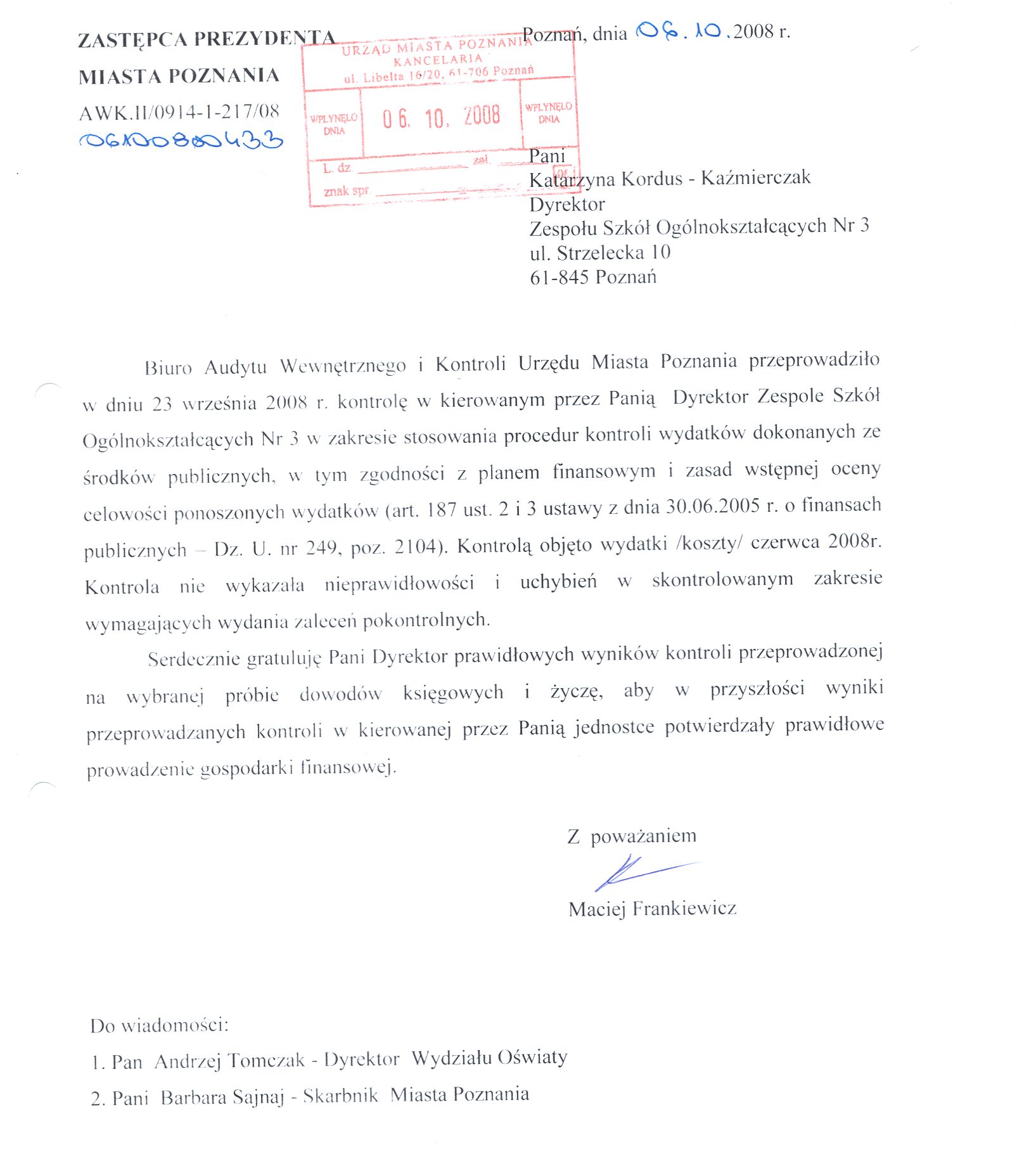 Informacja pobrana do BIP automatycznie z elektronicznego systemu zarządzania dokumentacją Urzędu Miasta Poznania.