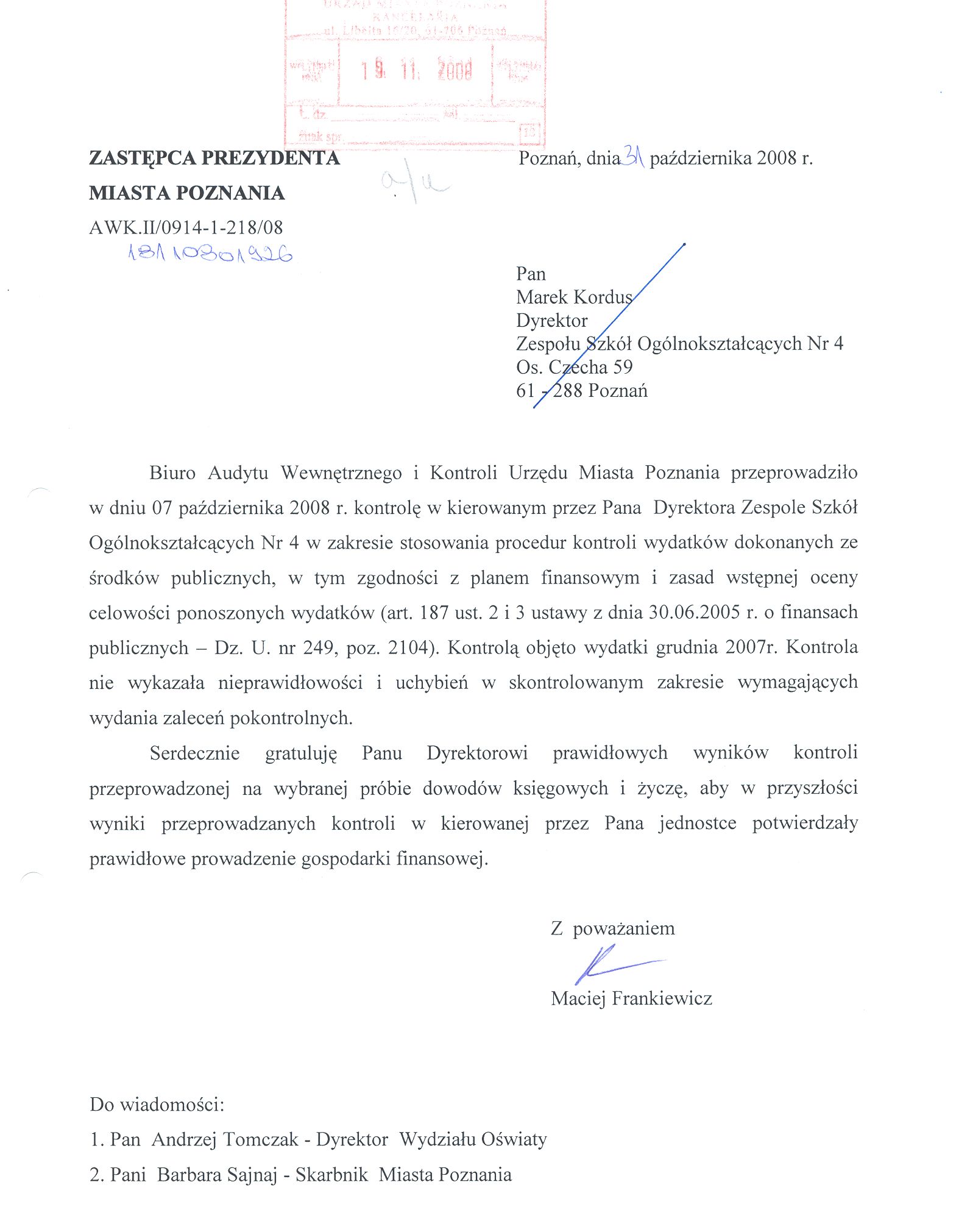 Informacja pobrana do BIP automatycznie z elektronicznego systemu zarządzania dokumentacją Urzędu Miasta Poznania.