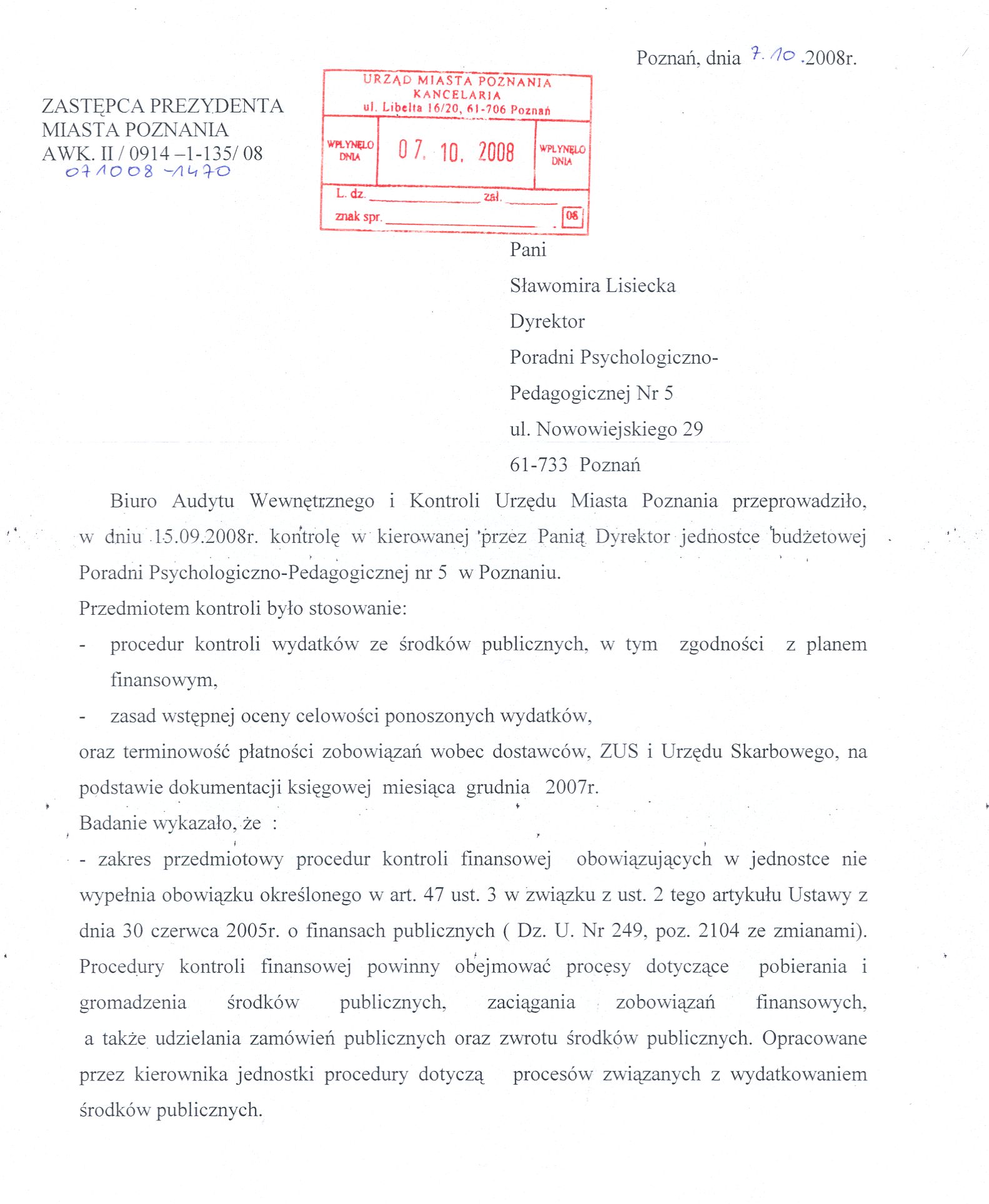 Kontrola: AWK.II/0914-1-135/08