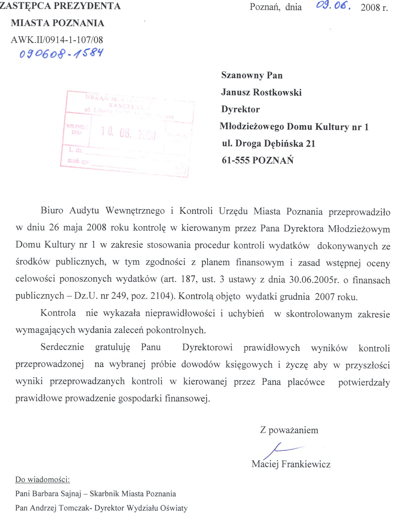 Informacja pobrana do BIP automatycznie z elektronicznego systemu zarządzania dokumentacją Urzędu Miasta Poznania.