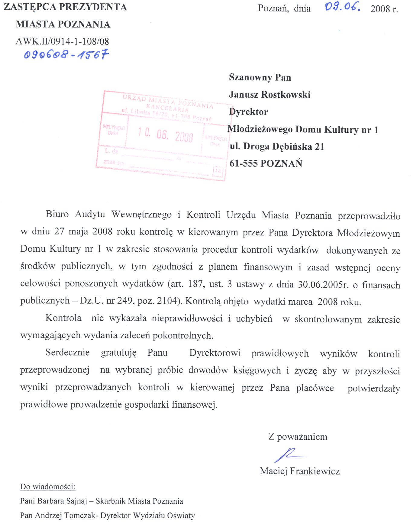 Informacja pobrana do BIP automatycznie z elektronicznego systemu zarządzania dokumentacją Urzędu Miasta Poznania.