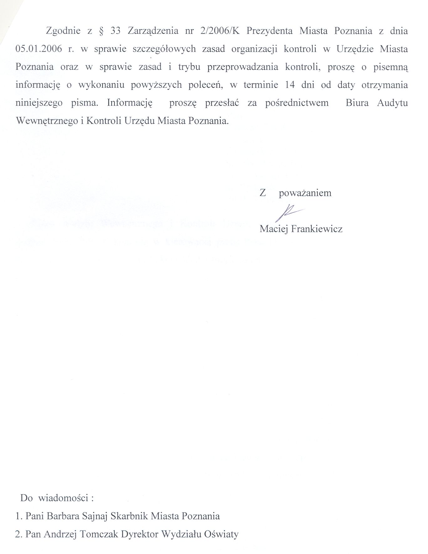Informacja pobrana do BIP automatycznie z elektronicznego systemu zarządzania dokumentacją Urzędu Miasta Poznania.