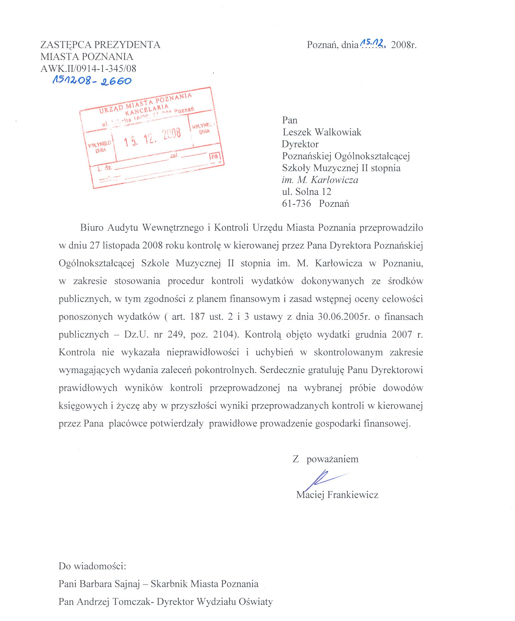 Informacja pobrana do BIP automatycznie z elektronicznego systemu zarządzania dokumentacją Urzędu Miasta Poznania.