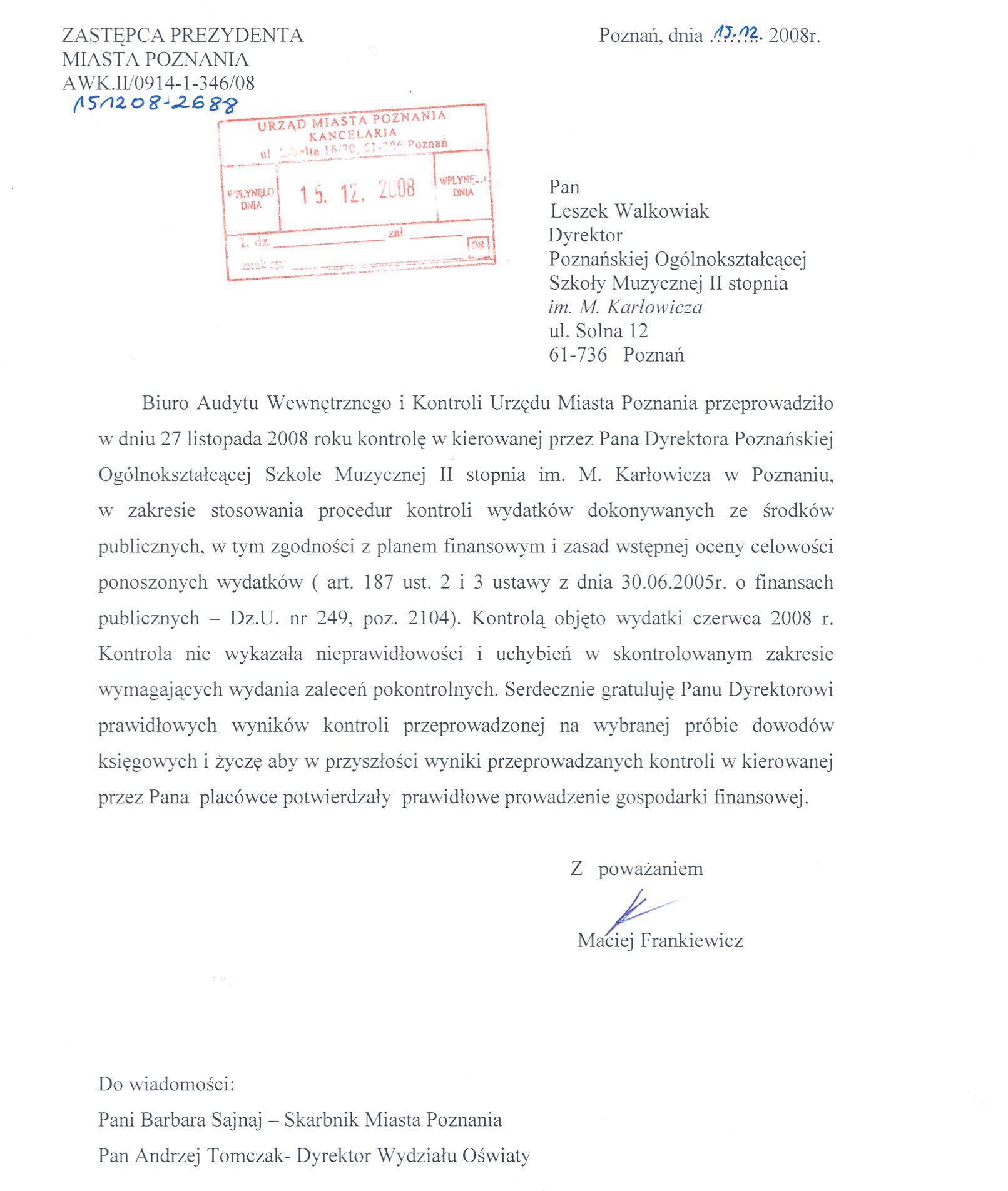 Informacja pobrana do BIP automatycznie z elektronicznego systemu zarządzania dokumentacją Urzędu Miasta Poznania.