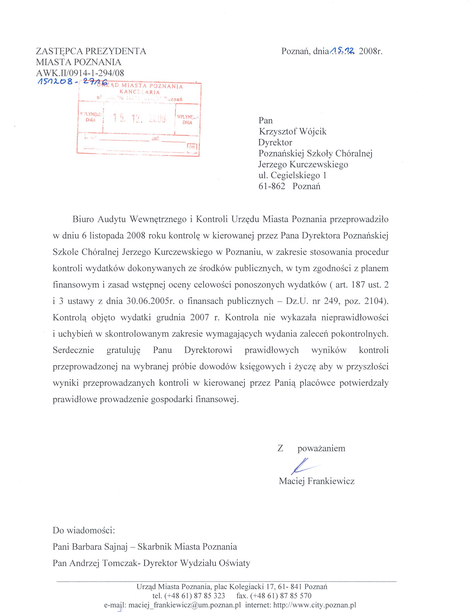 Informacja pobrana do BIP automatycznie z elektronicznego systemu zarządzania dokumentacją Urzędu Miasta Poznania.