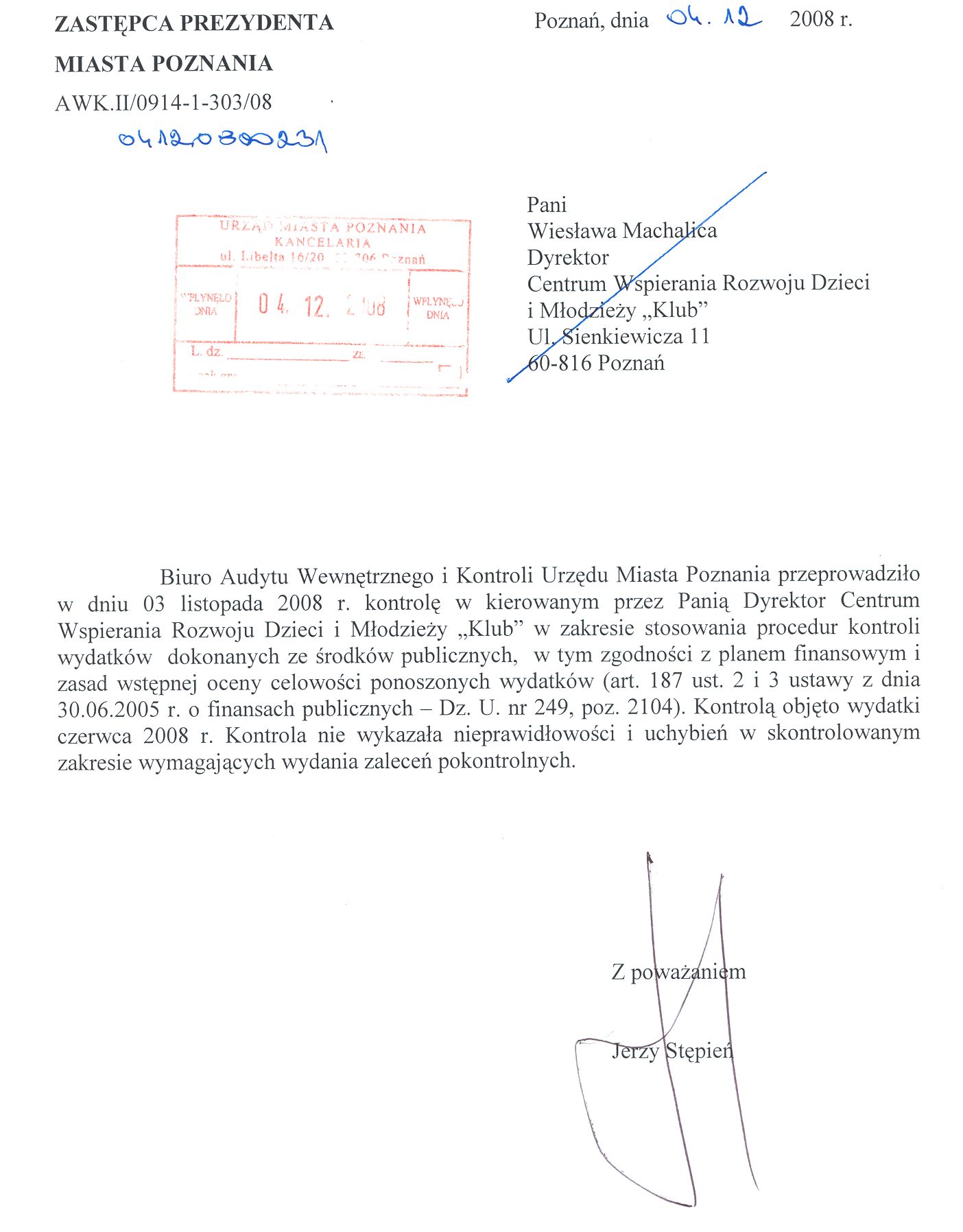Informacja pobrana do BIP automatycznie z elektronicznego systemu zarządzania dokumentacją Urzędu Miasta Poznania.