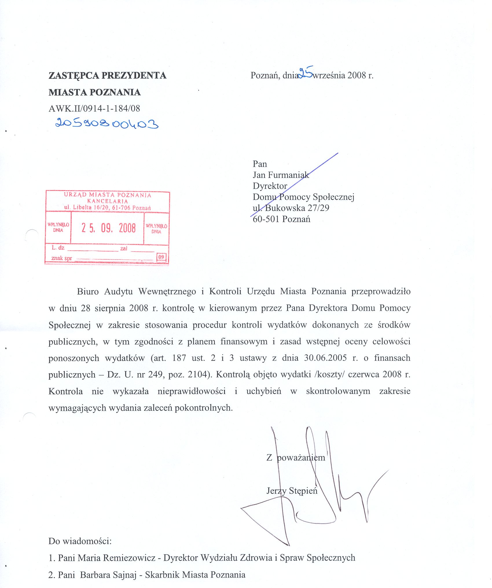 Kontrola: AWK.II/0914-1-184/08