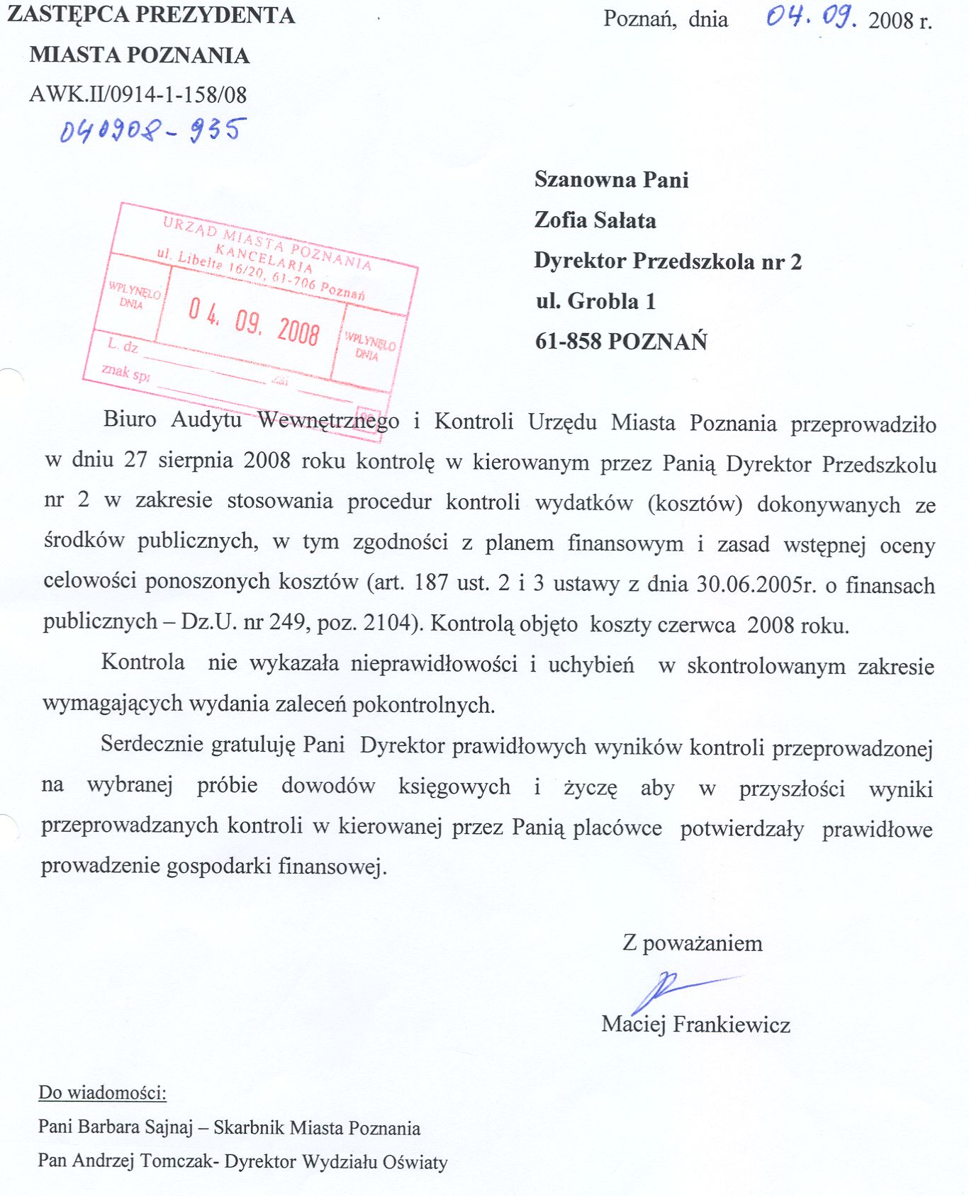 Kontrola: AWK.II/0914-1-158/08