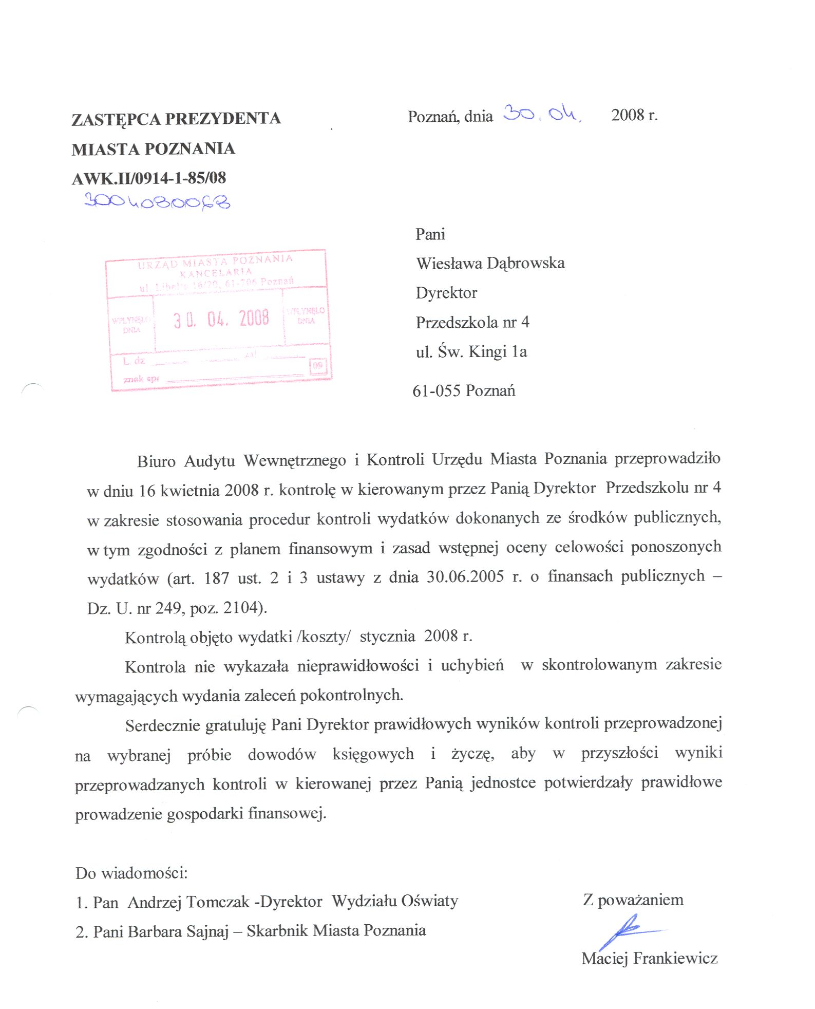 Informacja pobrana do BIP automatycznie z elektronicznego systemu zarządzania dokumentacją Urzędu Miasta Poznania.