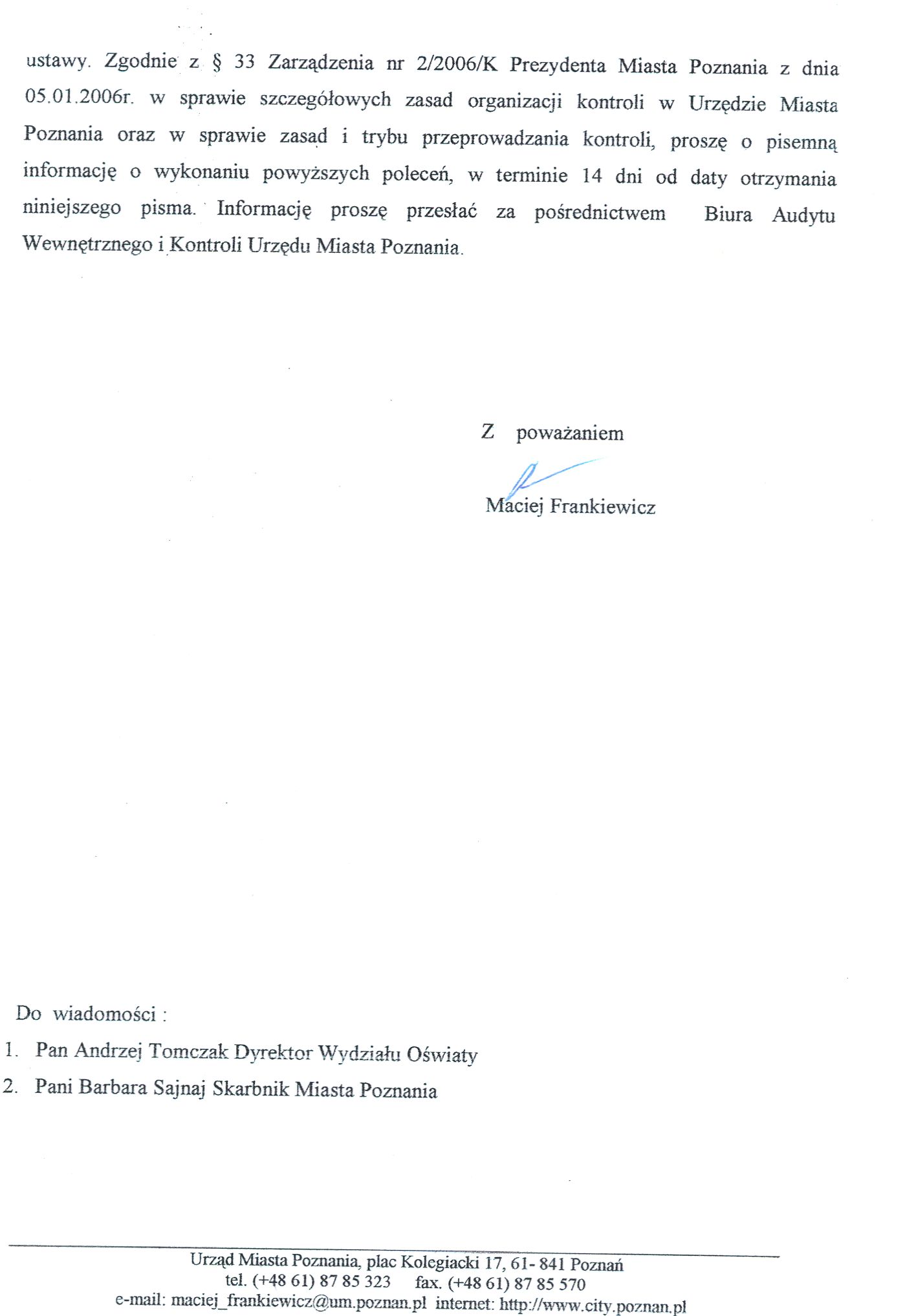Informacja pobrana do BIP automatycznie z elektronicznego systemu zarządzania dokumentacją Urzędu Miasta Poznania.