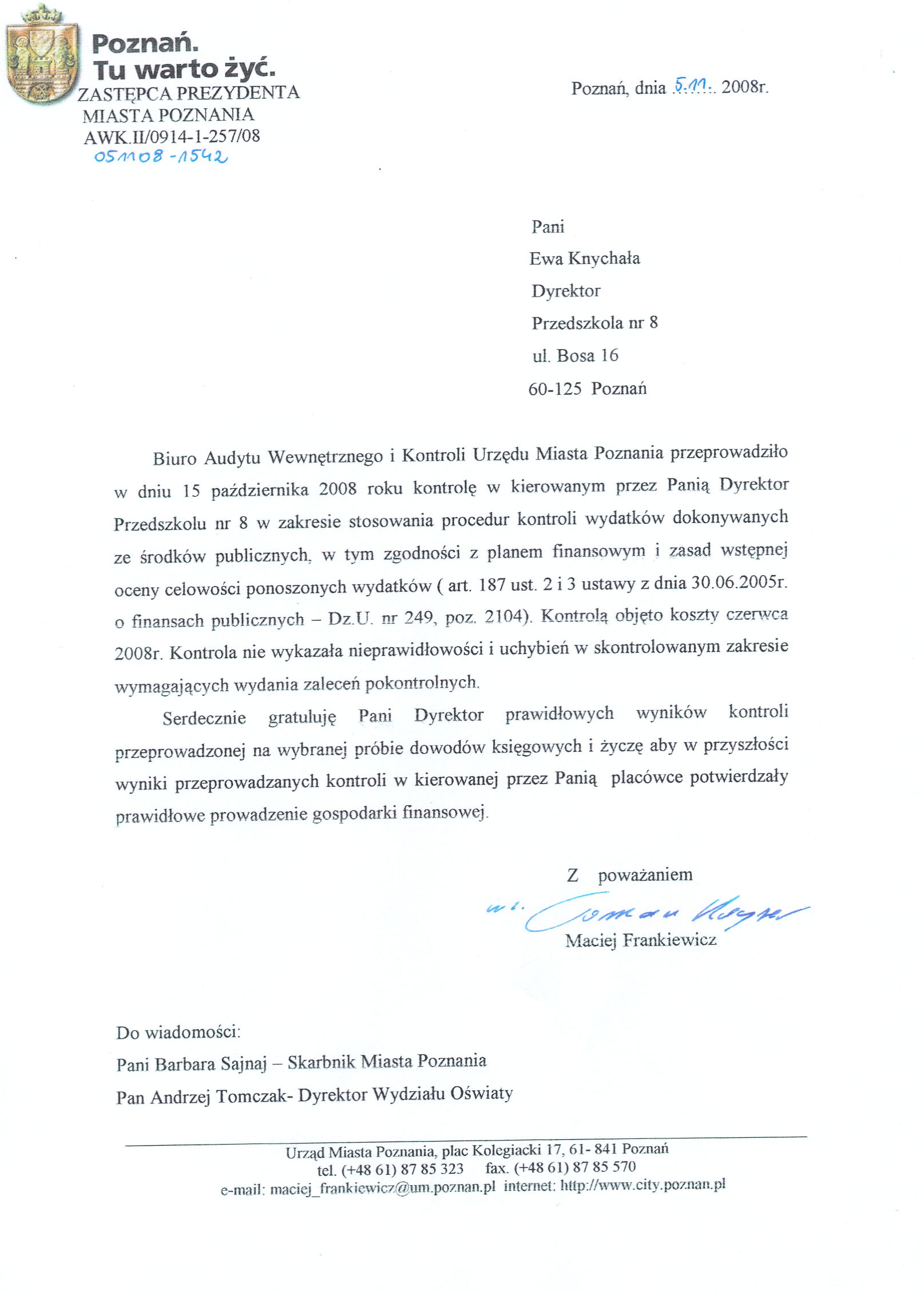 Informacja pobrana do BIP automatycznie z elektronicznego systemu zarządzania dokumentacją Urzędu Miasta Poznania.