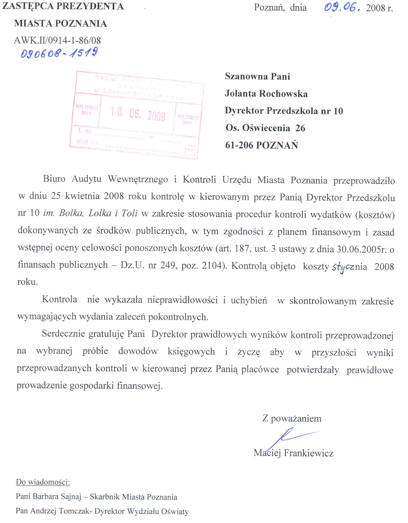 Informacja pobrana do BIP automatycznie z elektronicznego systemu zarządzania dokumentacją Urzędu Miasta Poznania.
