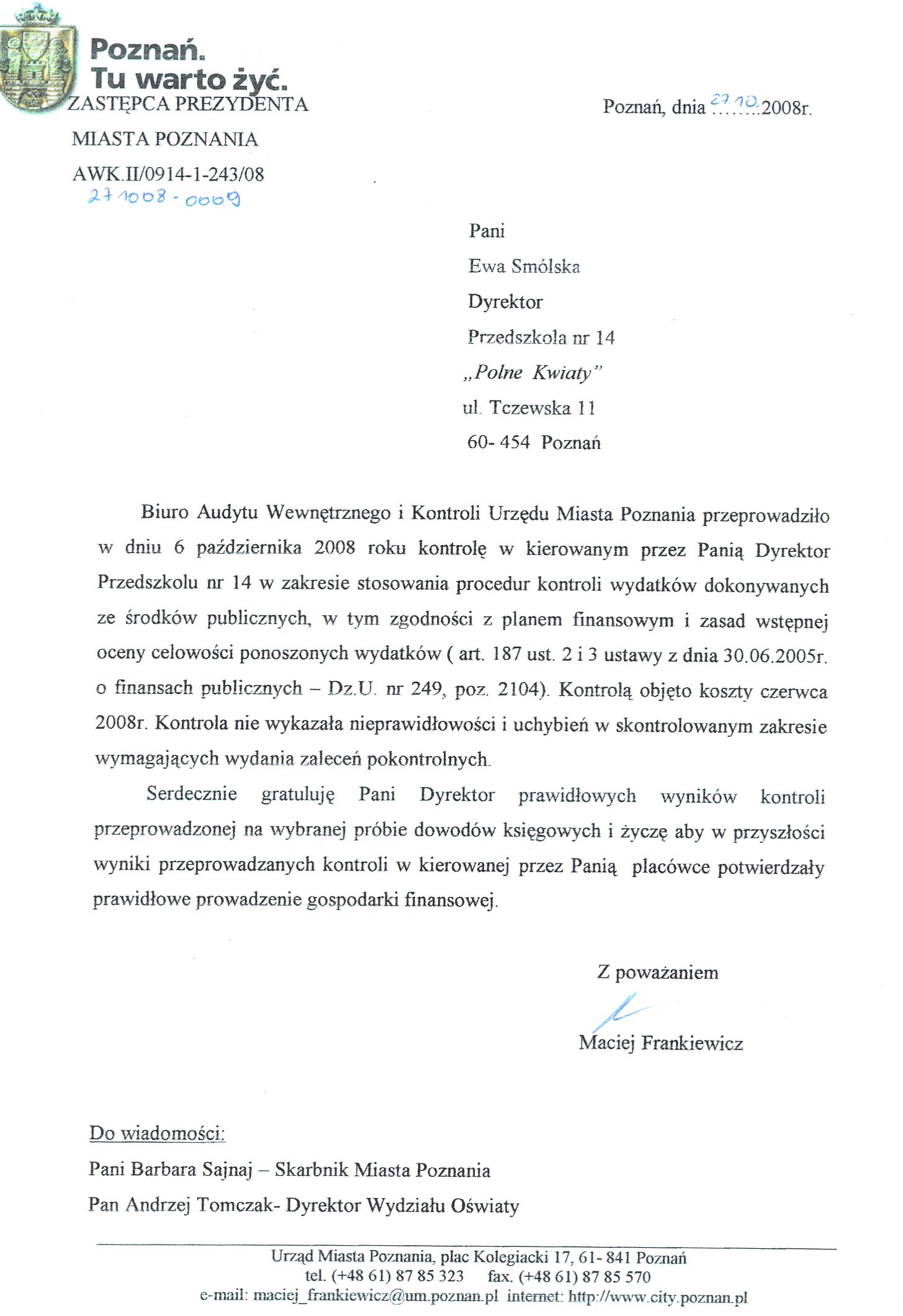 Informacja pobrana do BIP automatycznie z elektronicznego systemu zarządzania dokumentacją Urzędu Miasta Poznania.