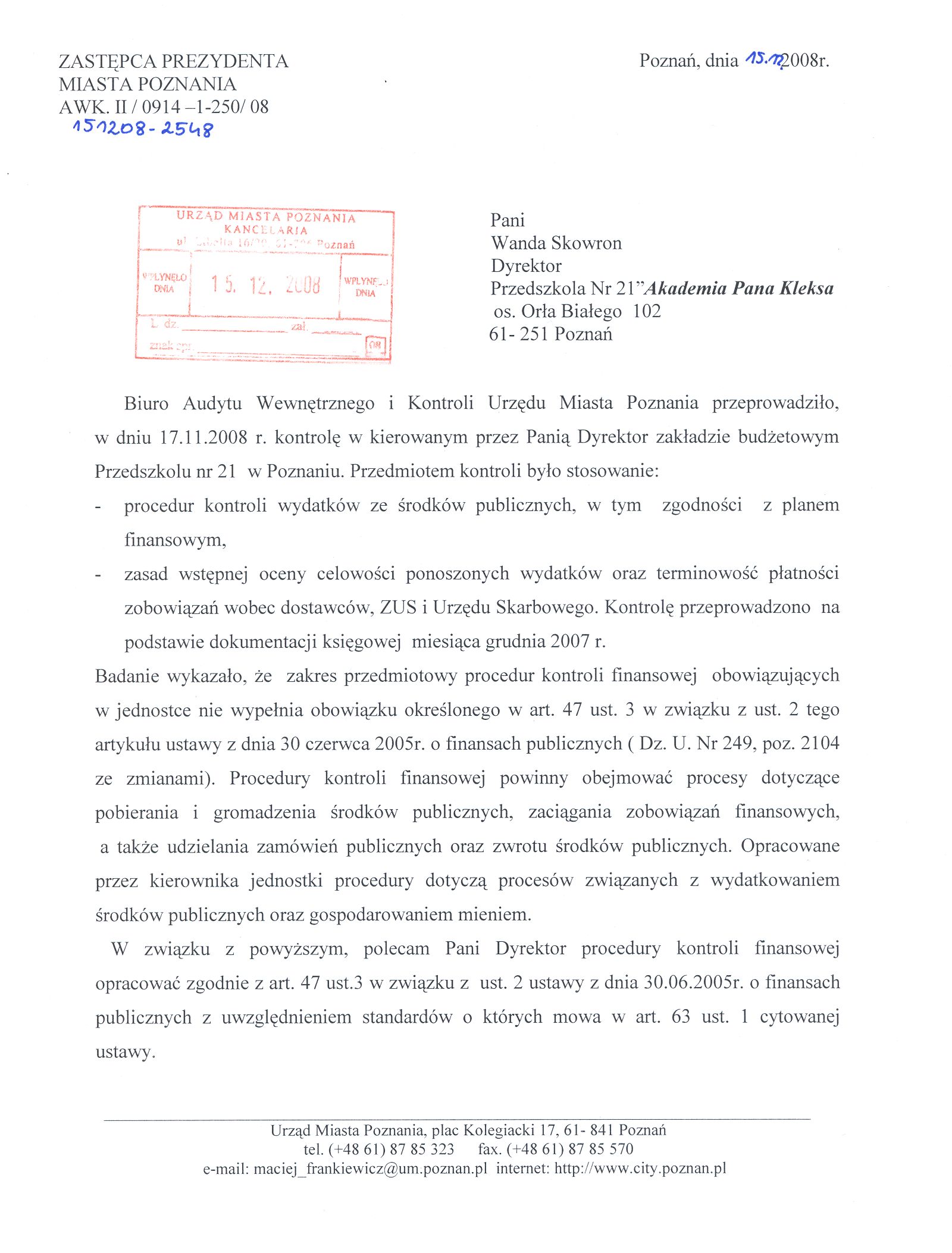 Kontrola: AWK.II/0914-1-250/08