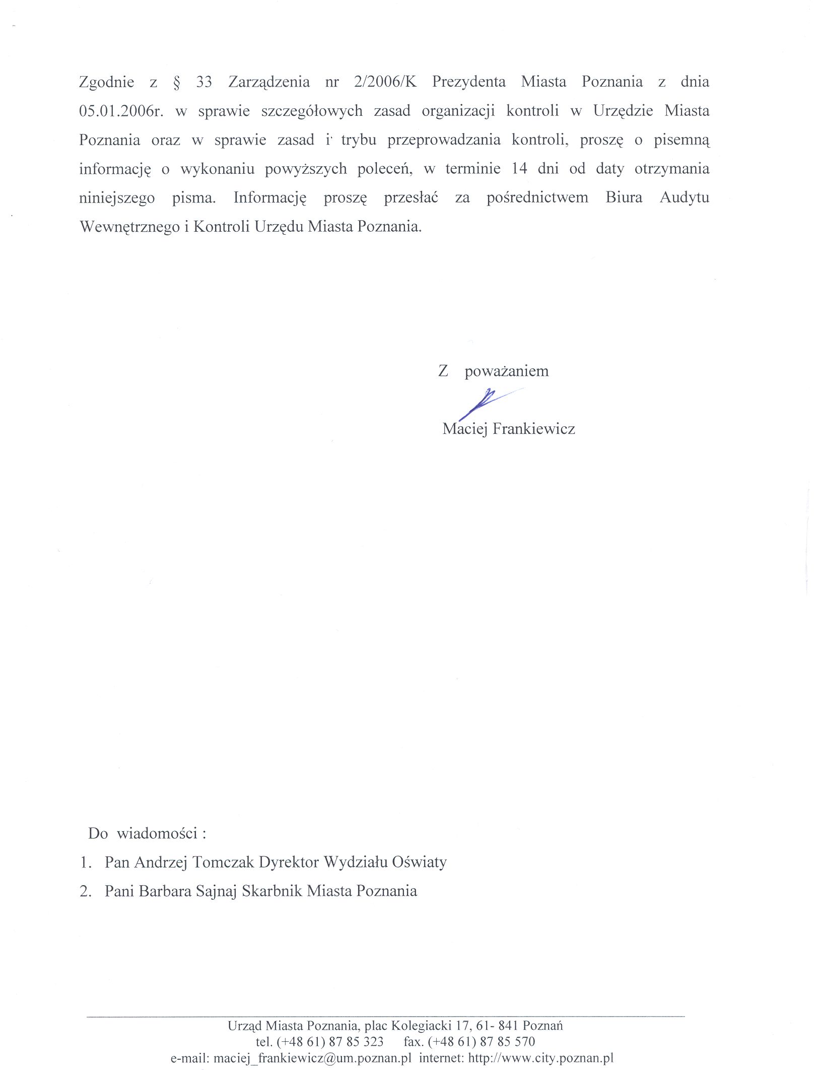 Informacja pobrana do BIP automatycznie z elektronicznego systemu zarządzania dokumentacją Urzędu Miasta Poznania.