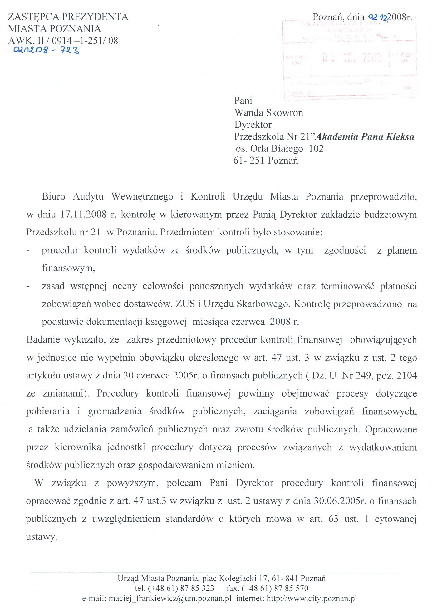 Kontrola: AWK.II/0914-1-251/08