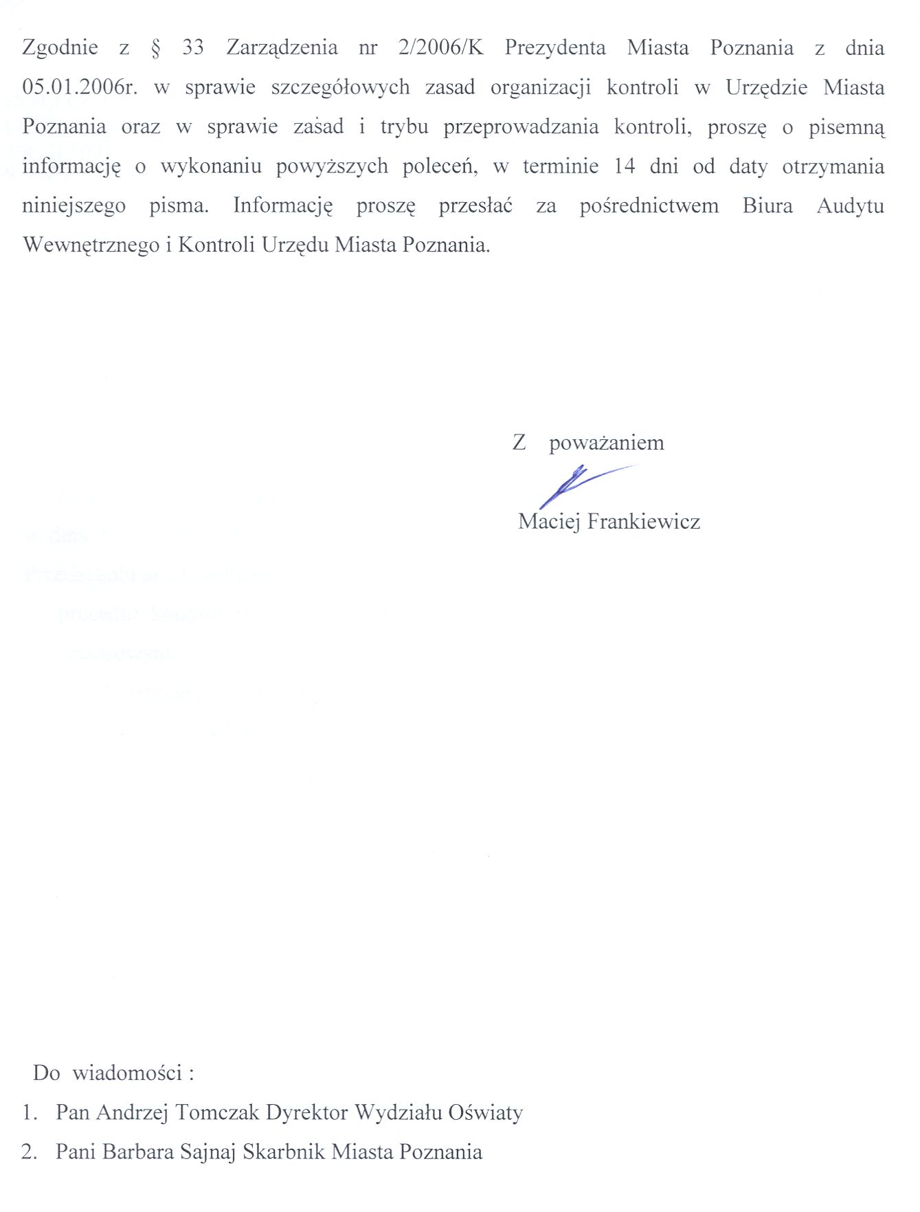 Informacja pobrana do BIP automatycznie z elektronicznego systemu zarządzania dokumentacją Urzędu Miasta Poznania.