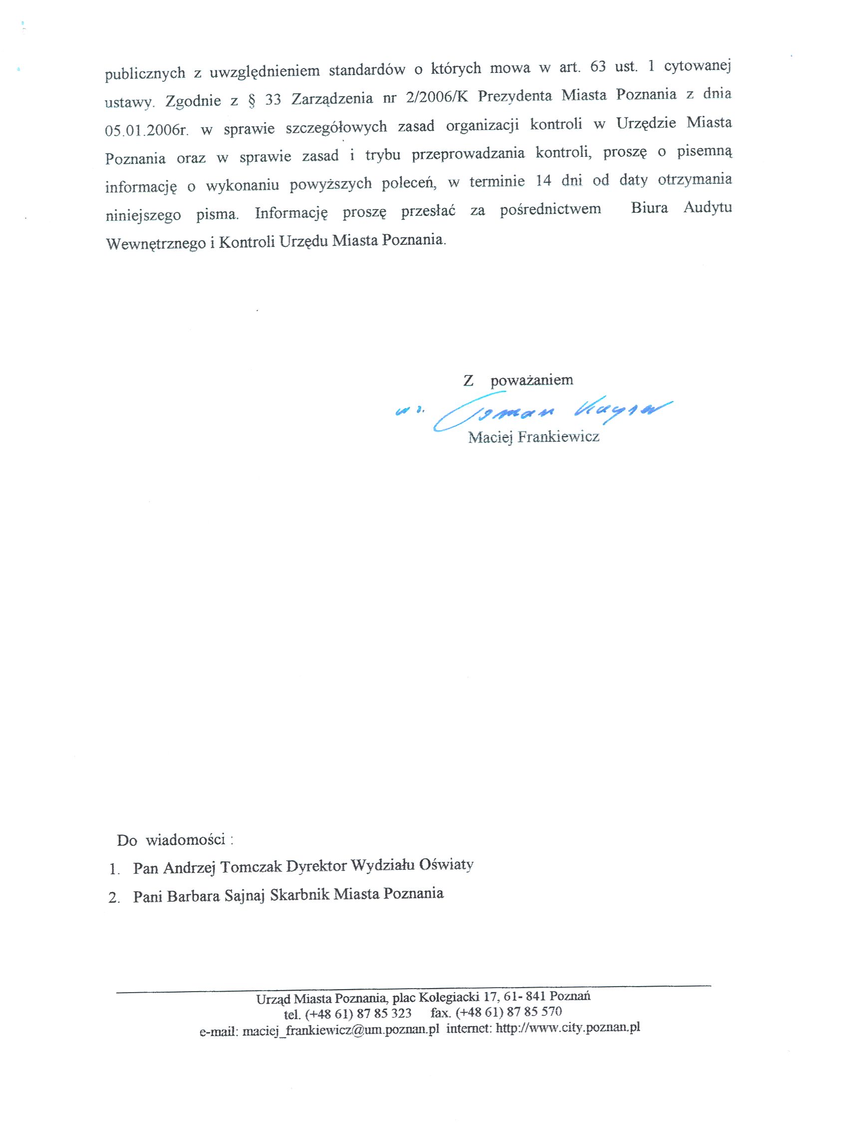 Informacja pobrana do BIP automatycznie z elektronicznego systemu zarządzania dokumentacją Urzędu Miasta Poznania.