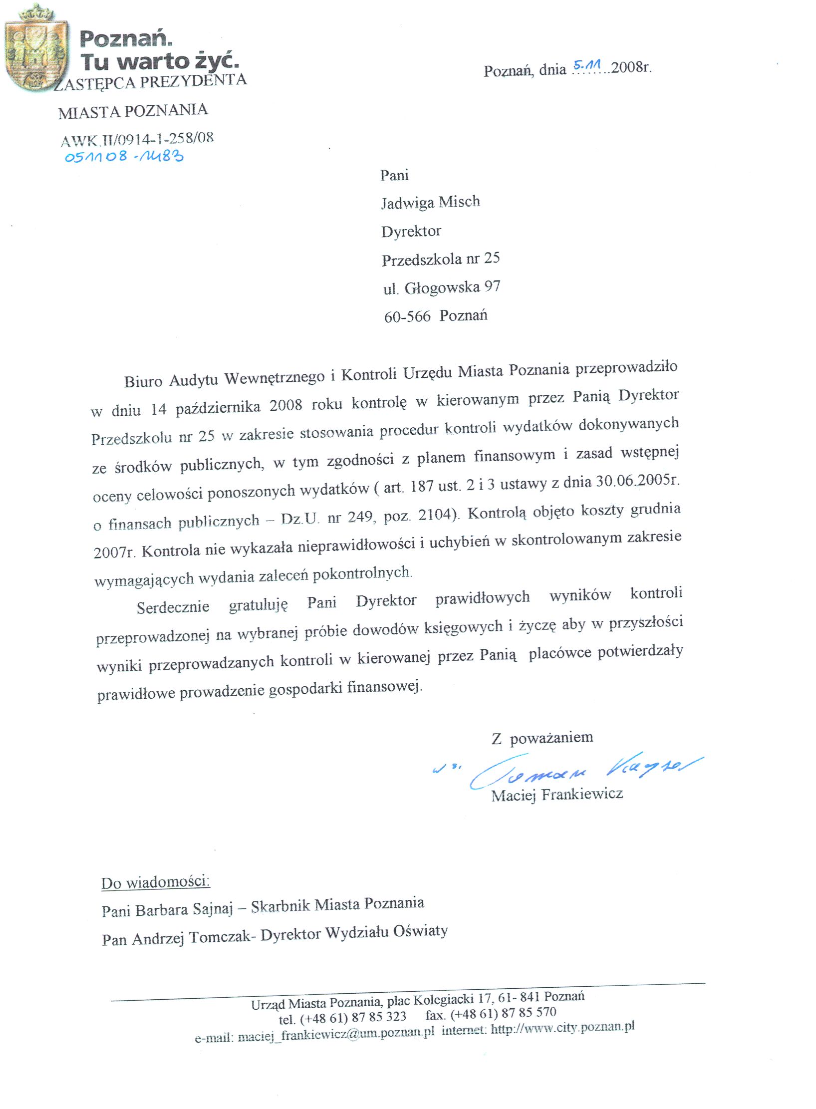 Informacja pobrana do BIP automatycznie z elektronicznego systemu zarządzania dokumentacją Urzędu Miasta Poznania.