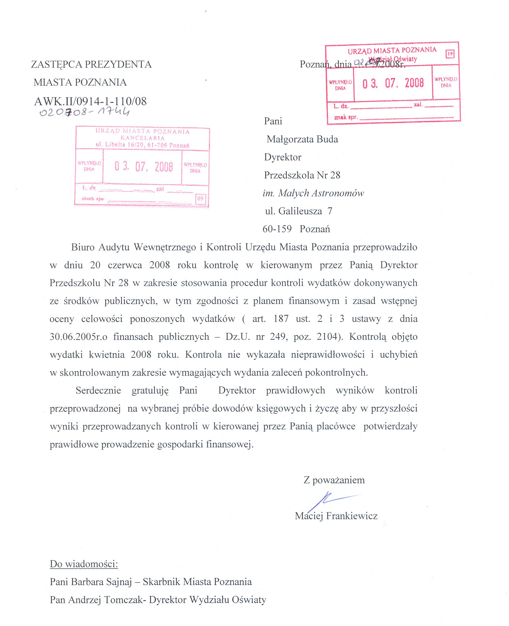 Informacja pobrana do BIP automatycznie z elektronicznego systemu zarządzania dokumentacją Urzędu Miasta Poznania.
