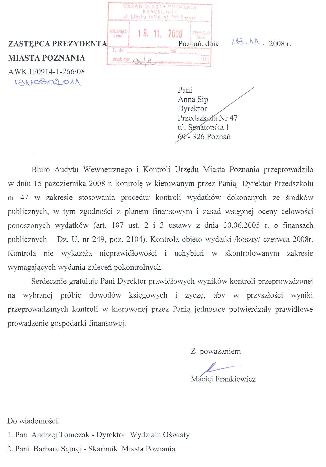 Informacja pobrana do BIP automatycznie z elektronicznego systemu zarządzania dokumentacją Urzędu Miasta Poznania.