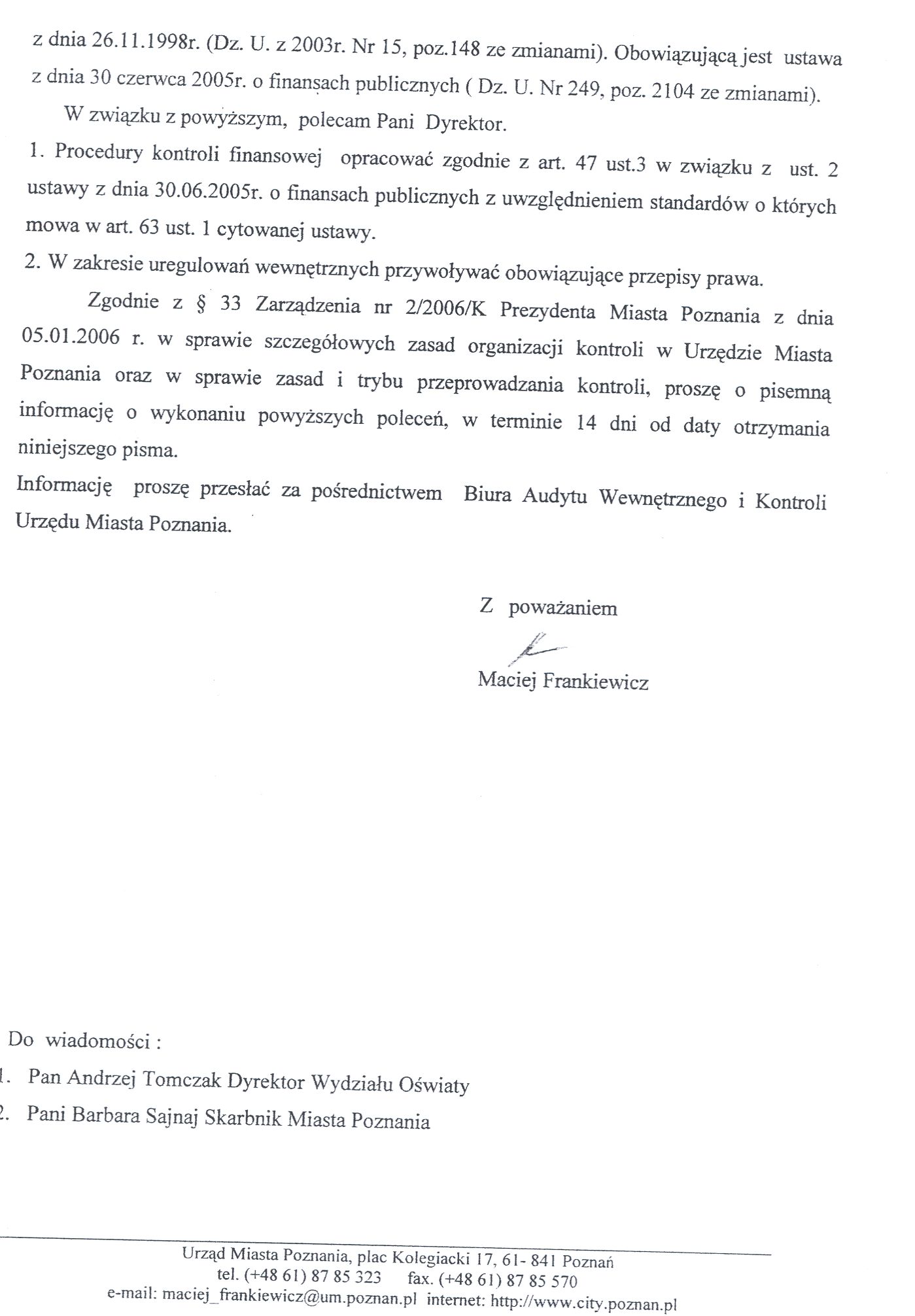 Informacja pobrana do BIP automatycznie z elektronicznego systemu zarządzania dokumentacją Urzędu Miasta Poznania.