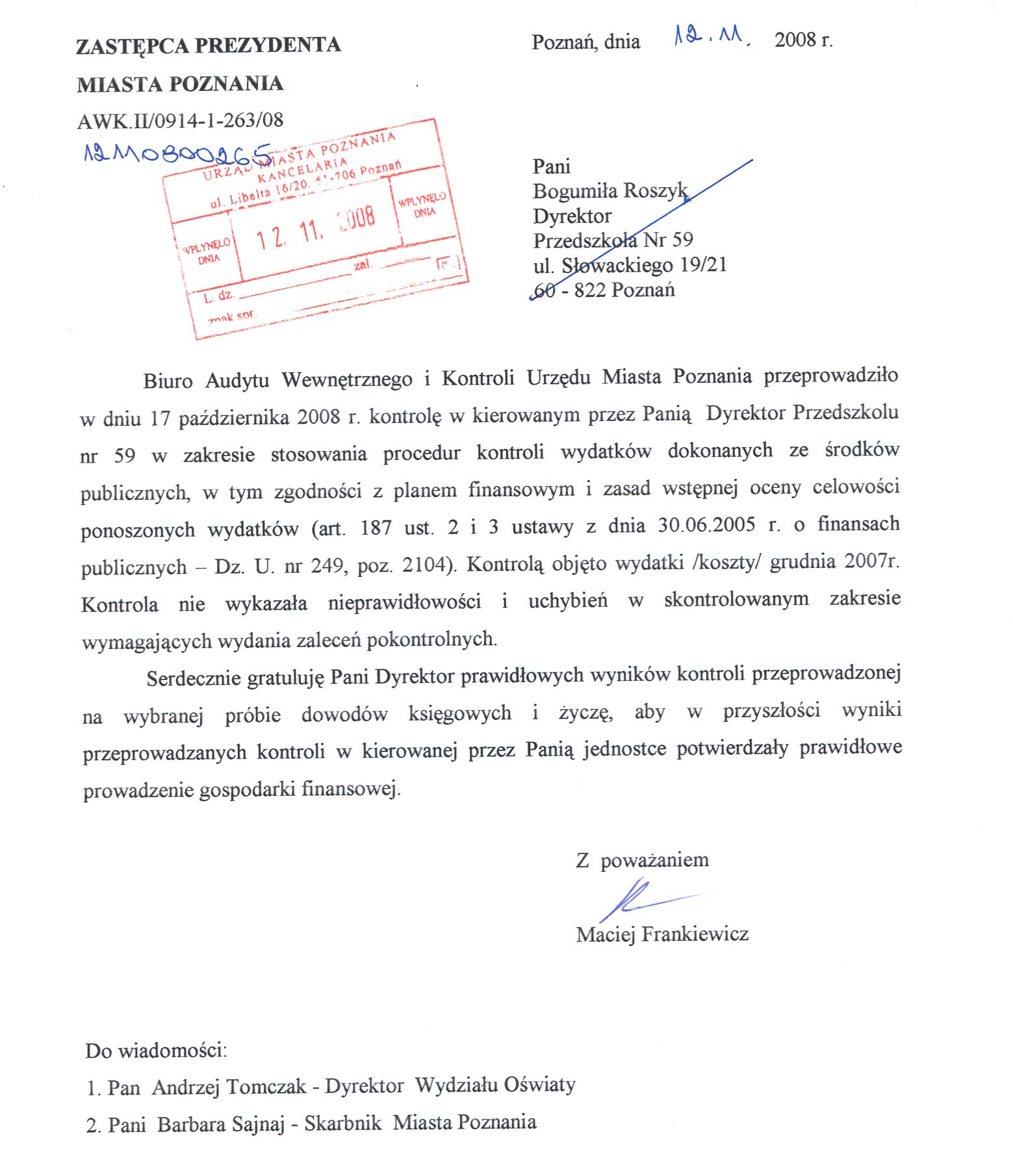 Kontrola: AWK.II/0914-1-263/08