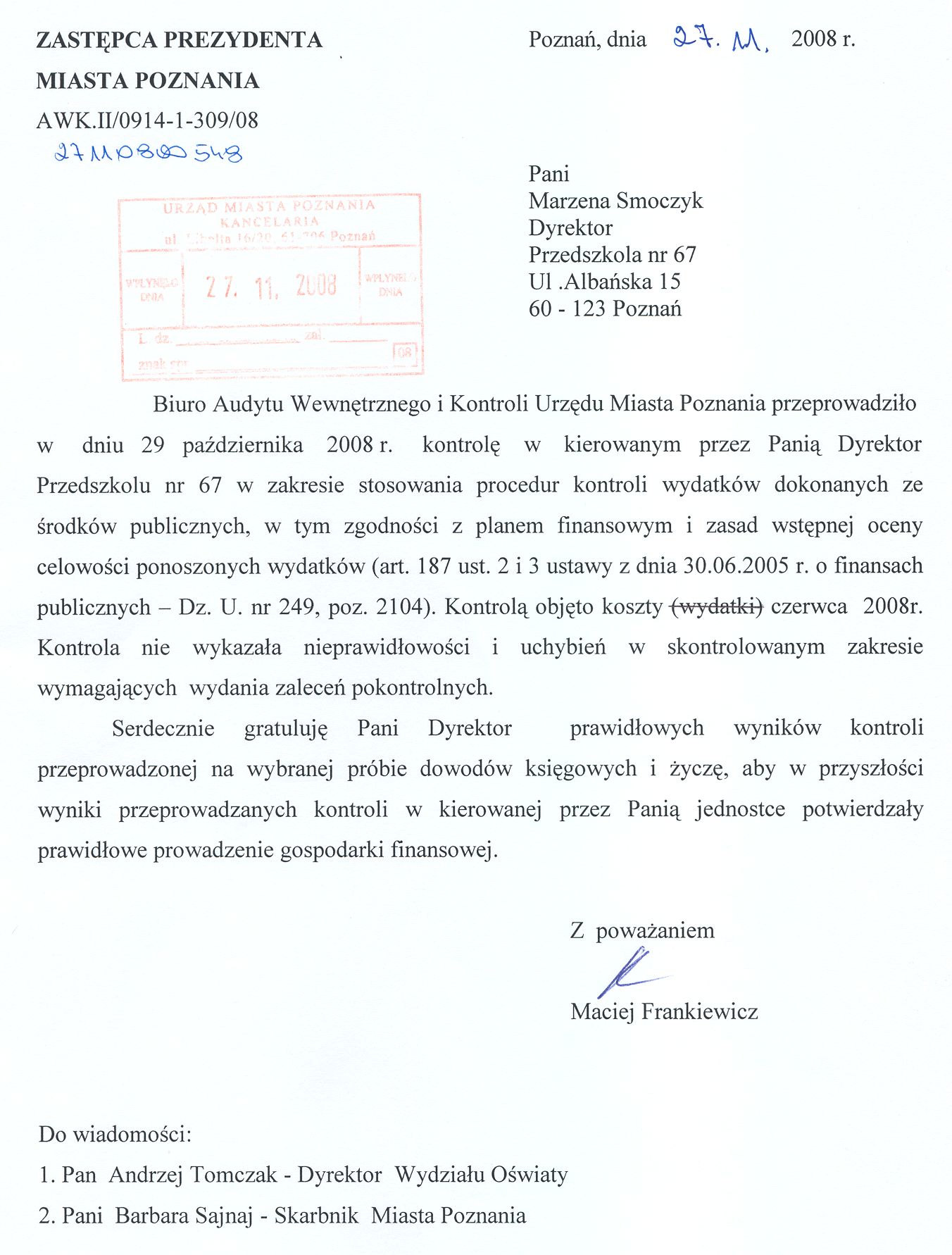 Informacja pobrana do BIP automatycznie z elektronicznego systemu zarządzania dokumentacją Urzędu Miasta Poznania.