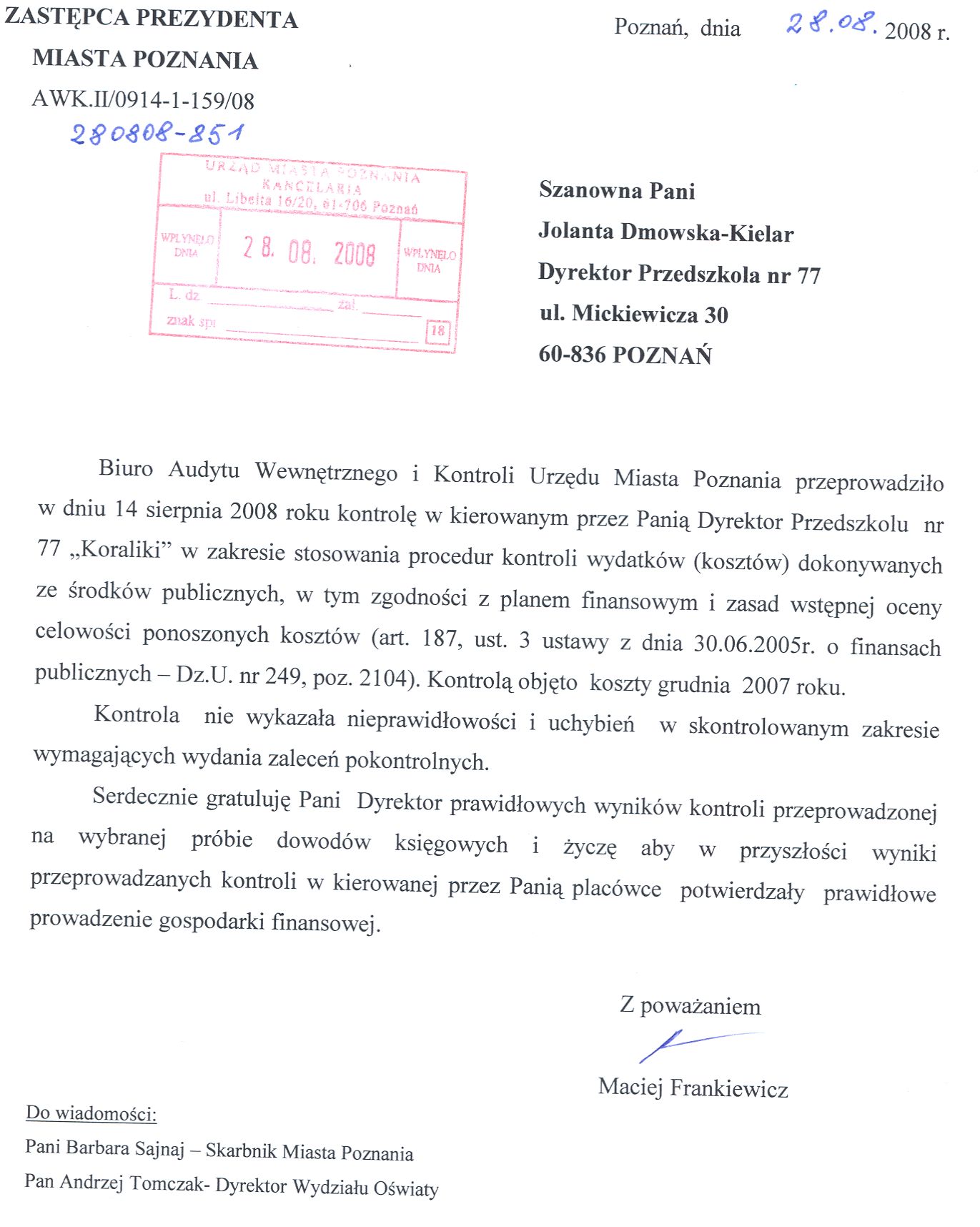 Informacja pobrana do BIP automatycznie z elektronicznego systemu zarządzania dokumentacją Urzędu Miasta Poznania.