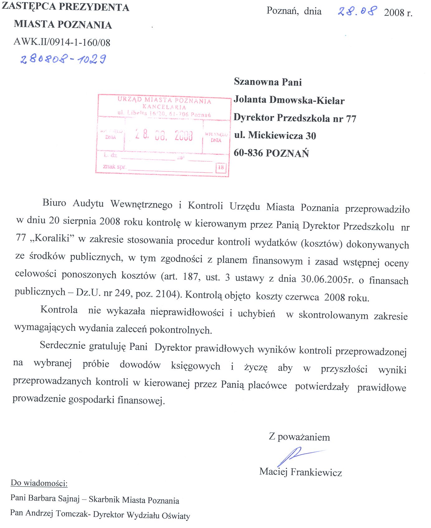 Informacja pobrana do BIP automatycznie z elektronicznego systemu zarządzania dokumentacją Urzędu Miasta Poznania.