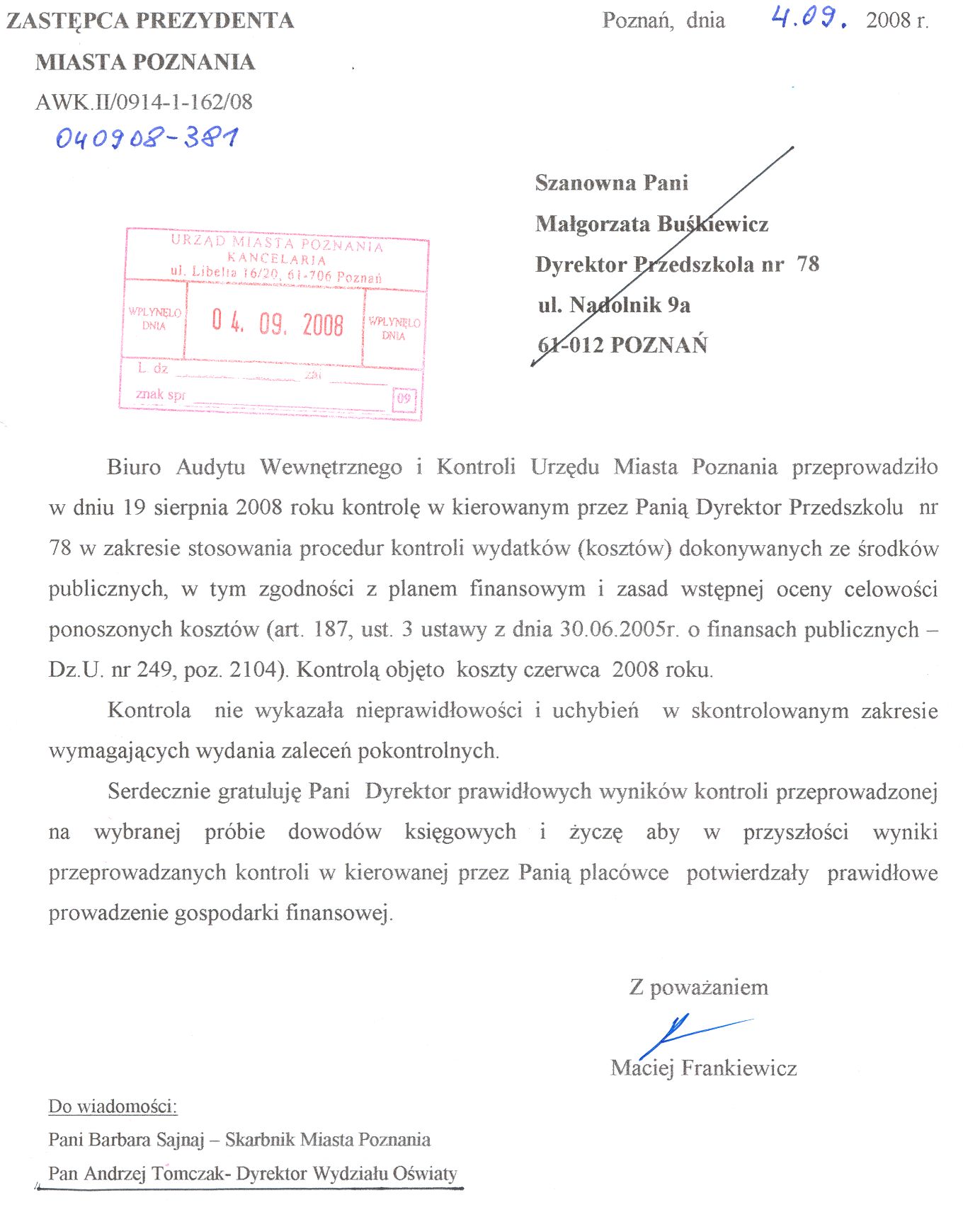 Kontrola: AWK.II/0914-1-162/08