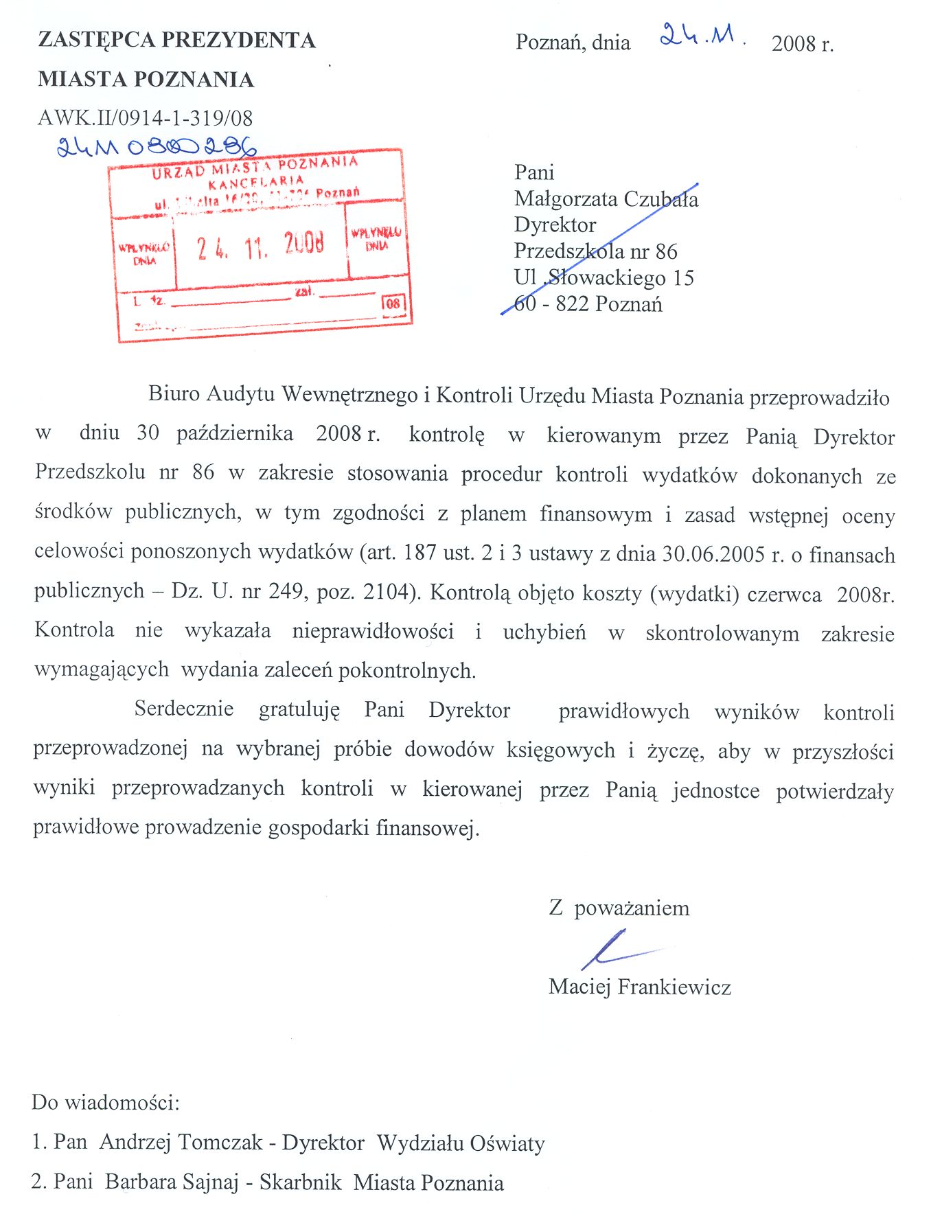 Informacja pobrana do BIP automatycznie z elektronicznego systemu zarządzania dokumentacją Urzędu Miasta Poznania.