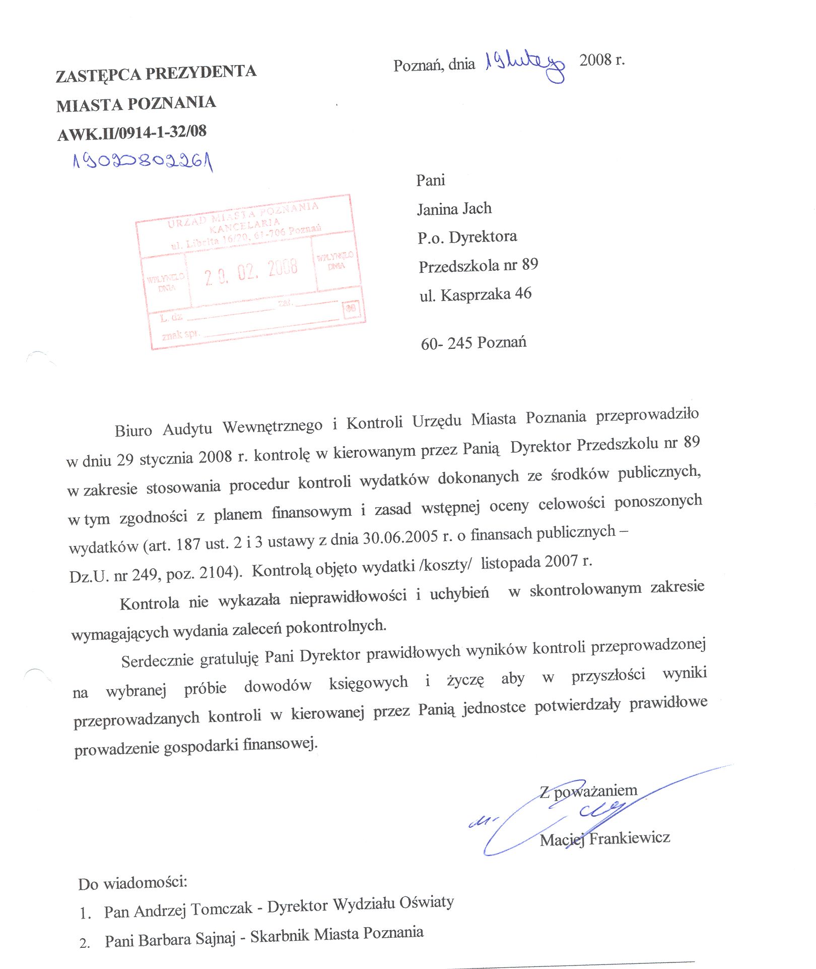 Informacja pobrana do BIP automatycznie z elektronicznego systemu zarządzania dokumentacją Urzędu Miasta Poznania.