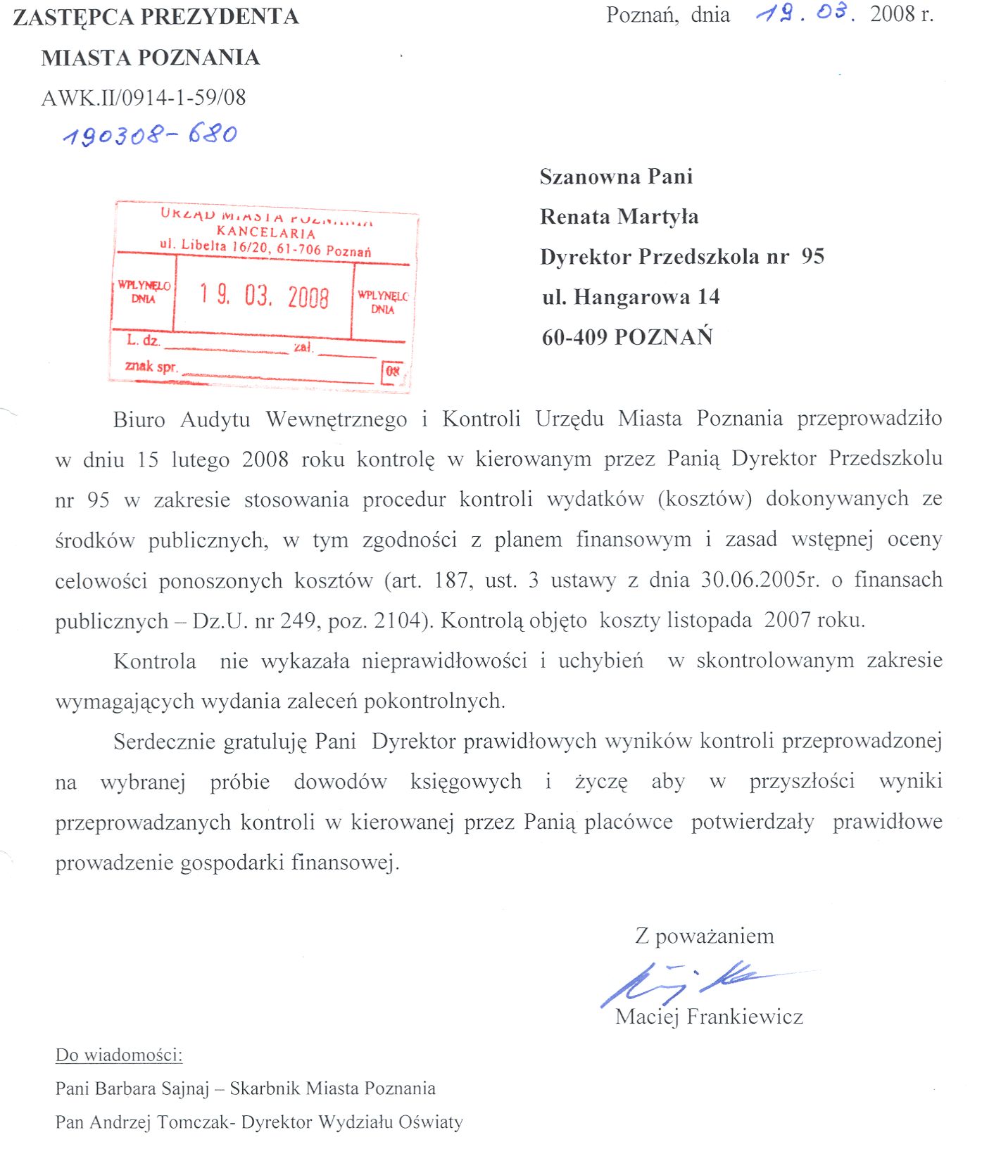 Informacja pobrana do BIP automatycznie z elektronicznego systemu zarządzania dokumentacją Urzędu Miasta Poznania.