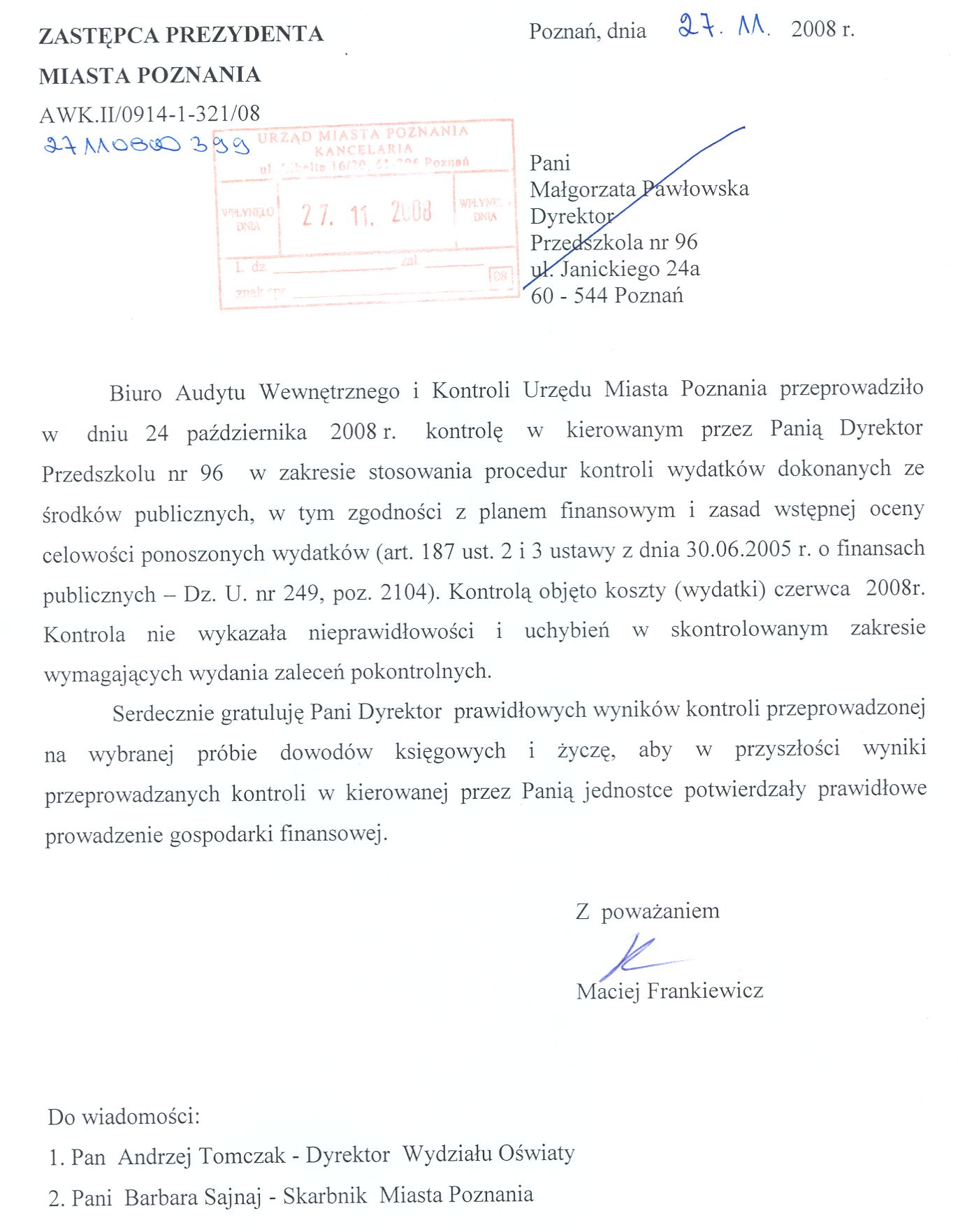 Informacja pobrana do BIP automatycznie z elektronicznego systemu zarządzania dokumentacją Urzędu Miasta Poznania.