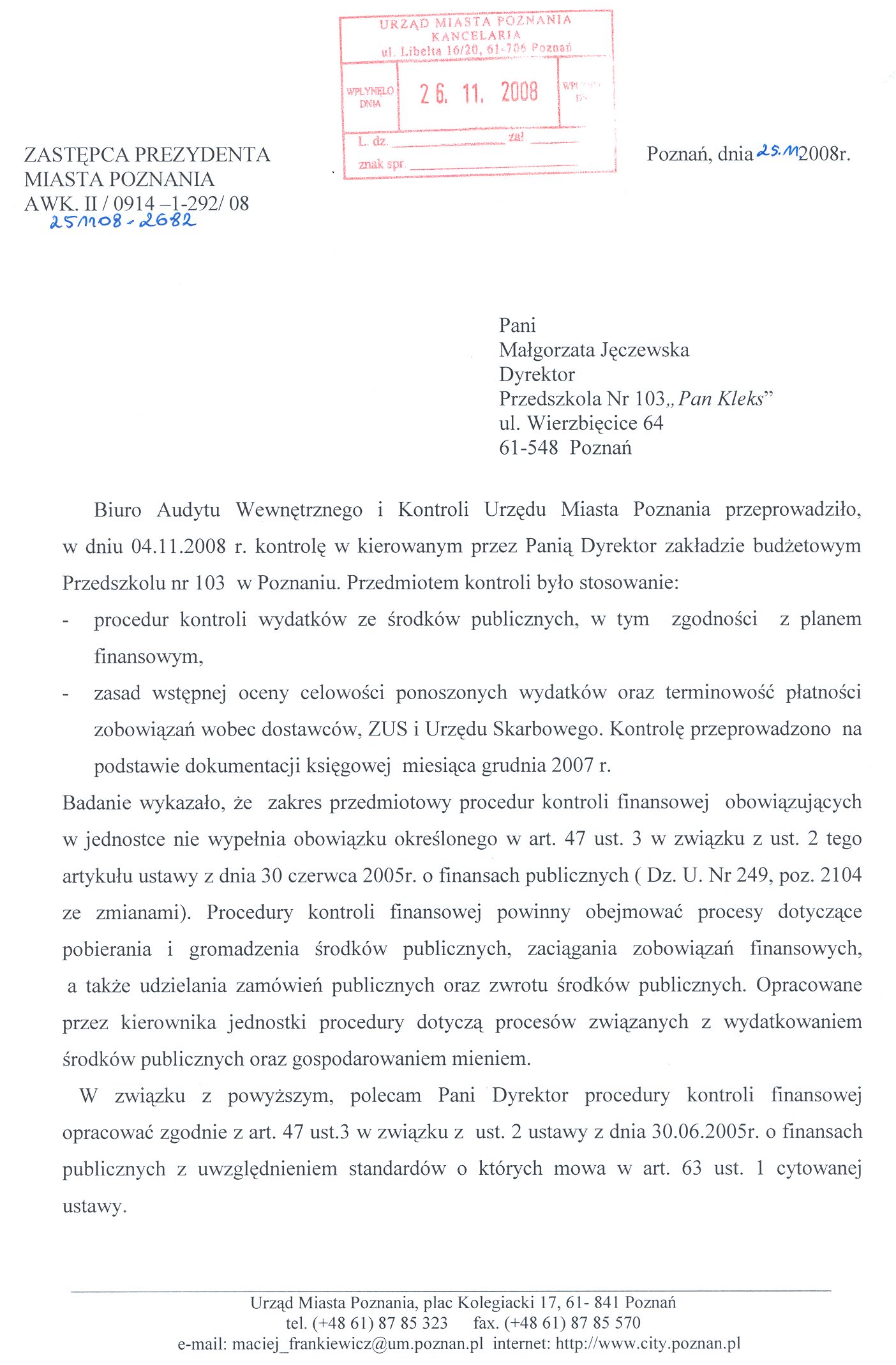 Kontrola: AWK.II/0914-1-292/08