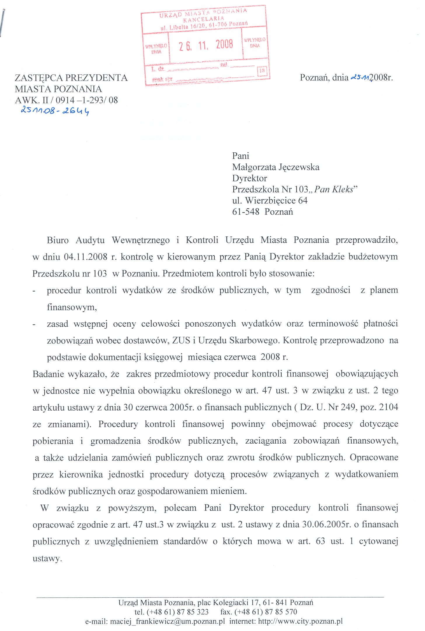 Kontrola: AWK.II/0914-1-293/08