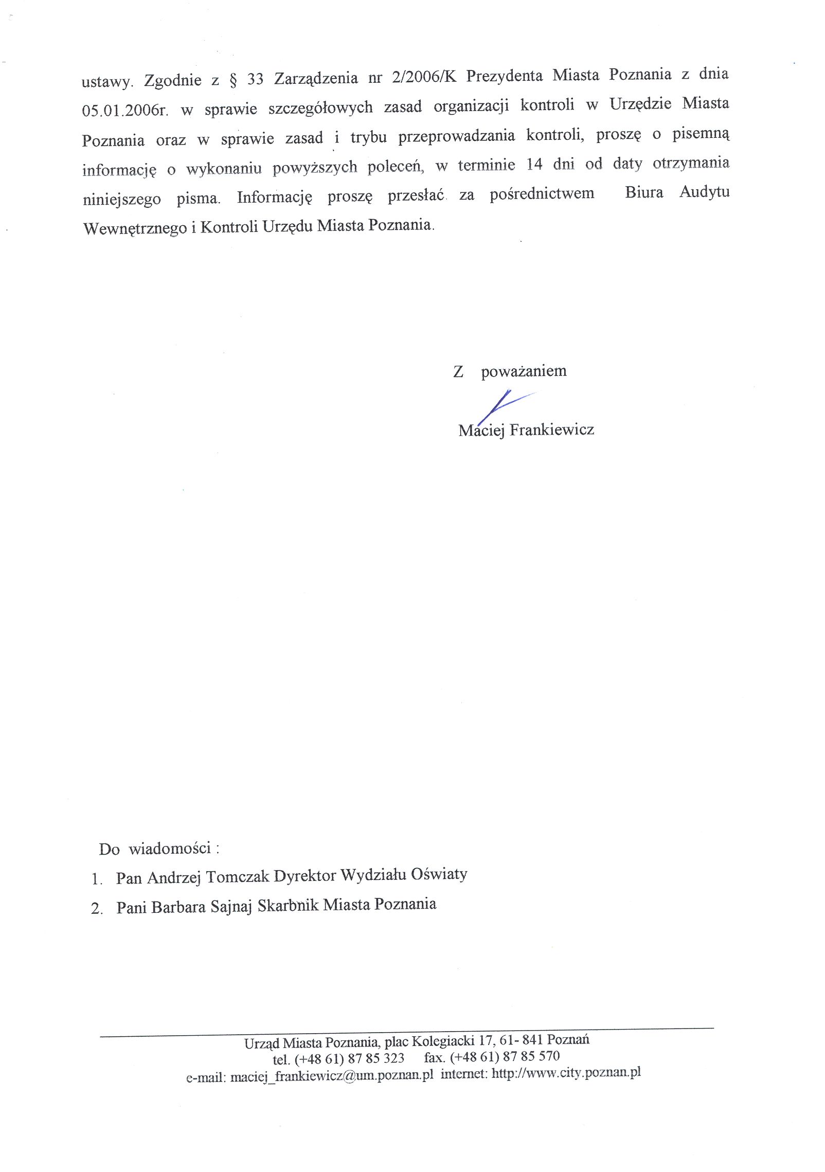Informacja pobrana do BIP automatycznie z elektronicznego systemu zarządzania dokumentacją Urzędu Miasta Poznania.