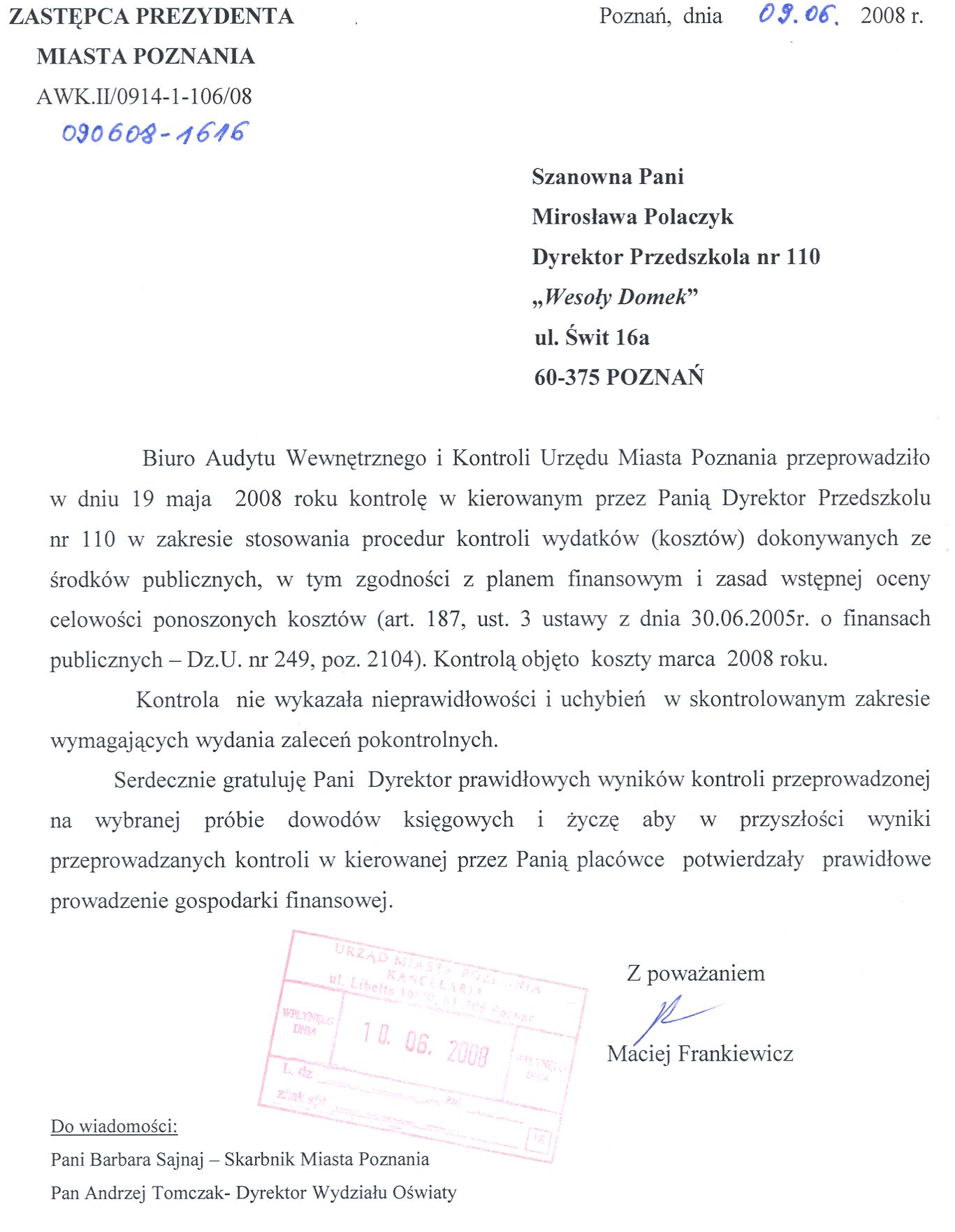 Informacja pobrana do BIP automatycznie z elektronicznego systemu zarządzania dokumentacją Urzędu Miasta Poznania.