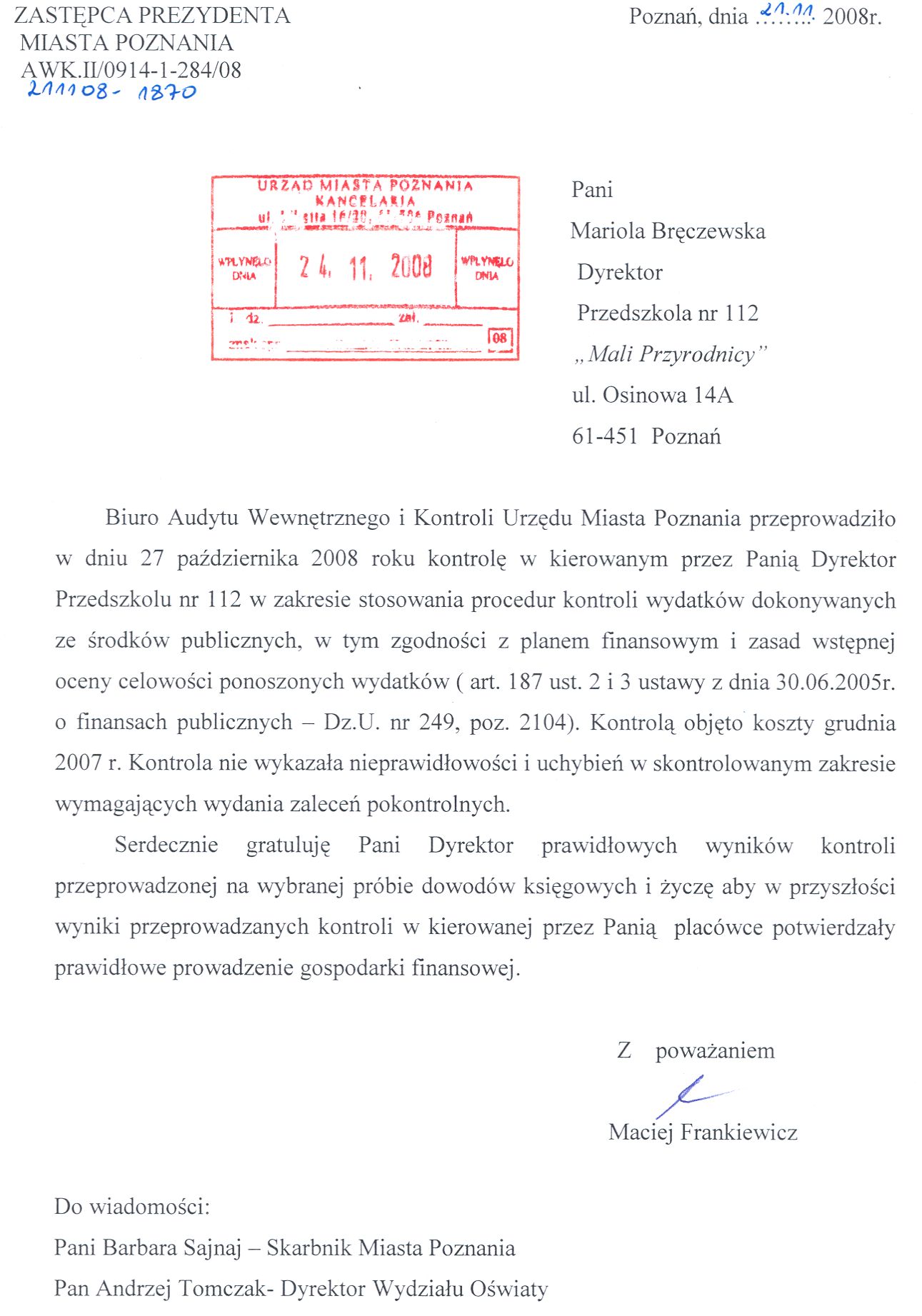 Informacja pobrana do BIP automatycznie z elektronicznego systemu zarządzania dokumentacją Urzędu Miasta Poznania.