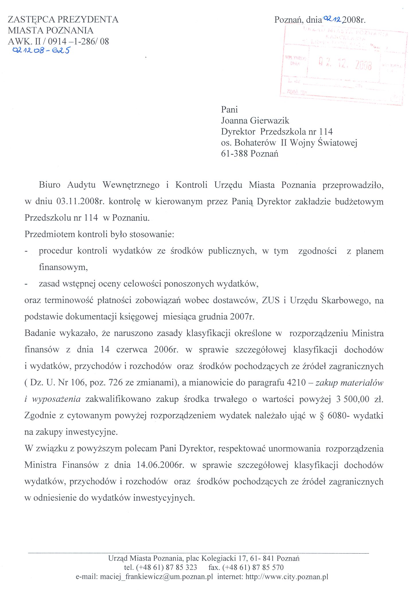 Informacja pobrana do BIP automatycznie z elektronicznego systemu zarządzania dokumentacją Urzędu Miasta Poznania.