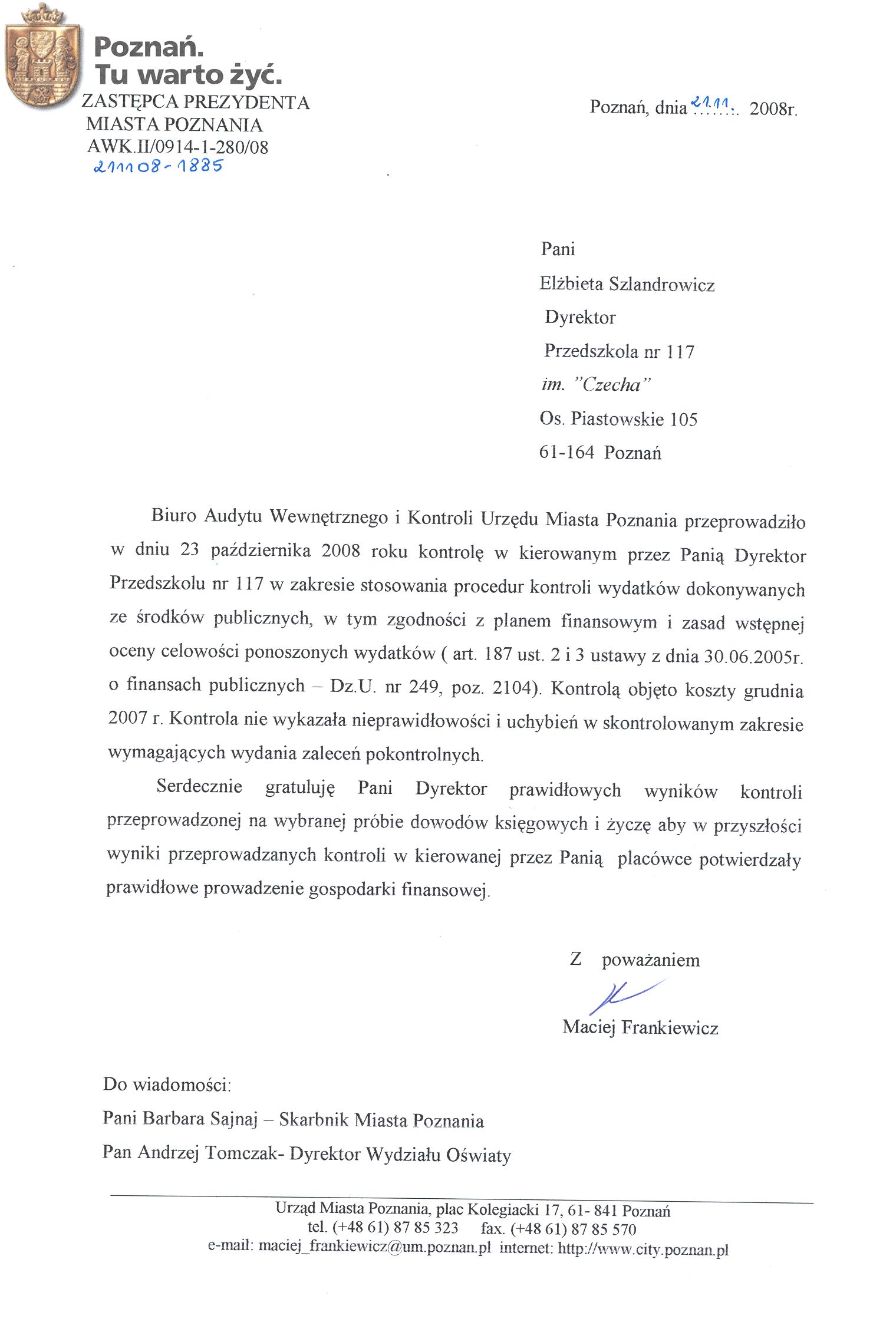 Informacja pobrana do BIP automatycznie z elektronicznego systemu zarządzania dokumentacją Urzędu Miasta Poznania.