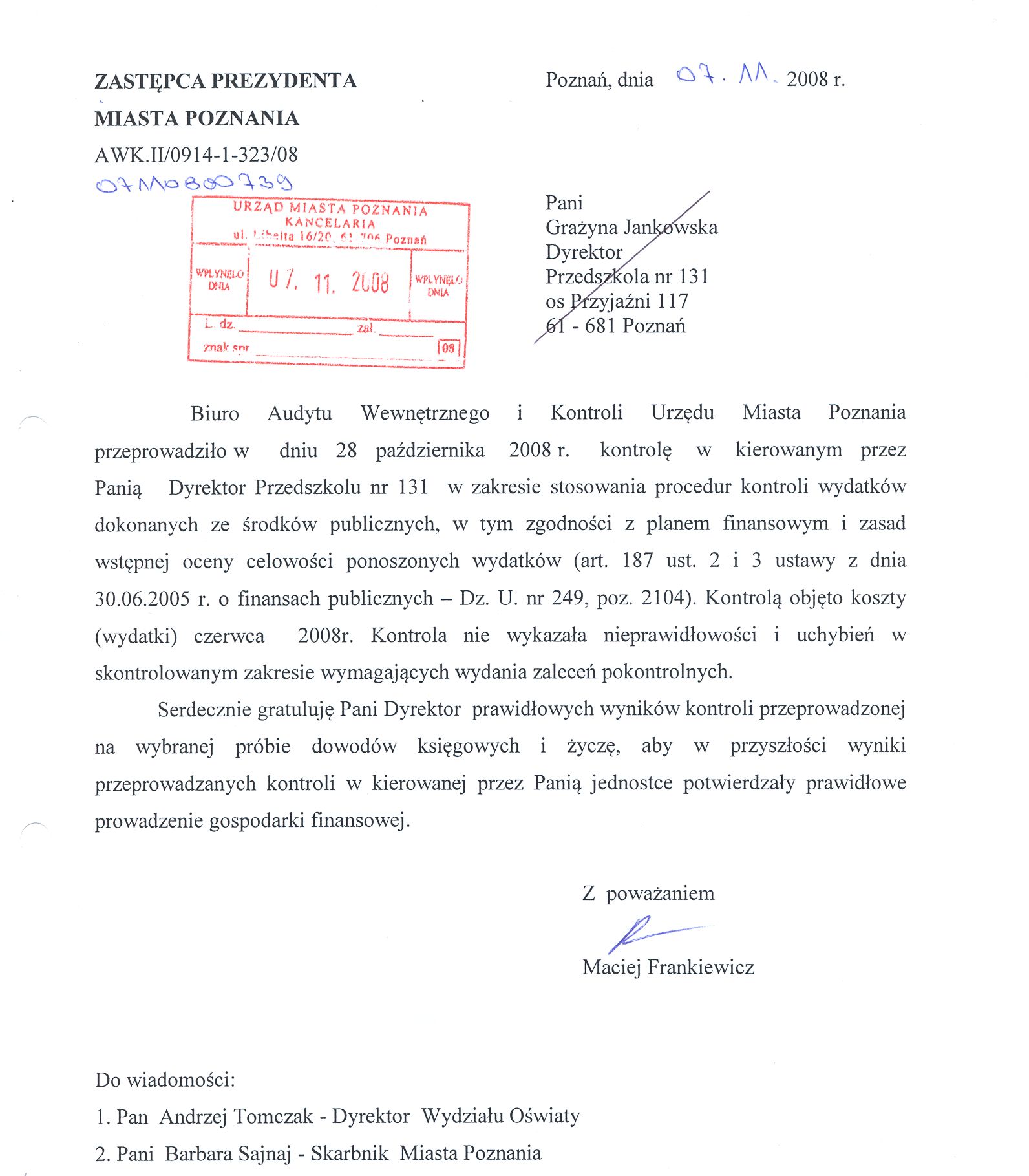 Informacja pobrana do BIP automatycznie z elektronicznego systemu zarządzania dokumentacją Urzędu Miasta Poznania.