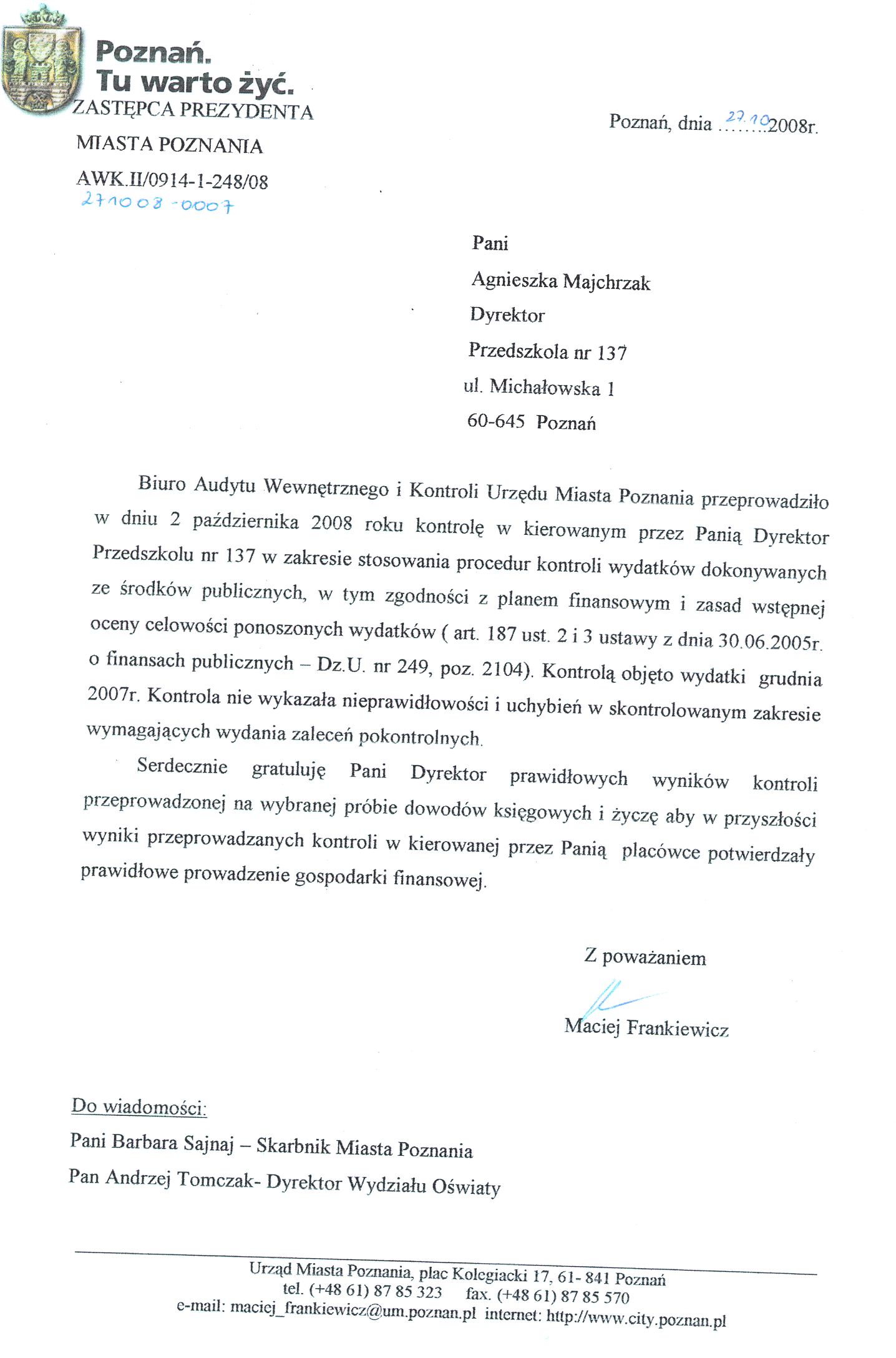 Informacja pobrana do BIP automatycznie z elektronicznego systemu zarządzania dokumentacją Urzędu Miasta Poznania.