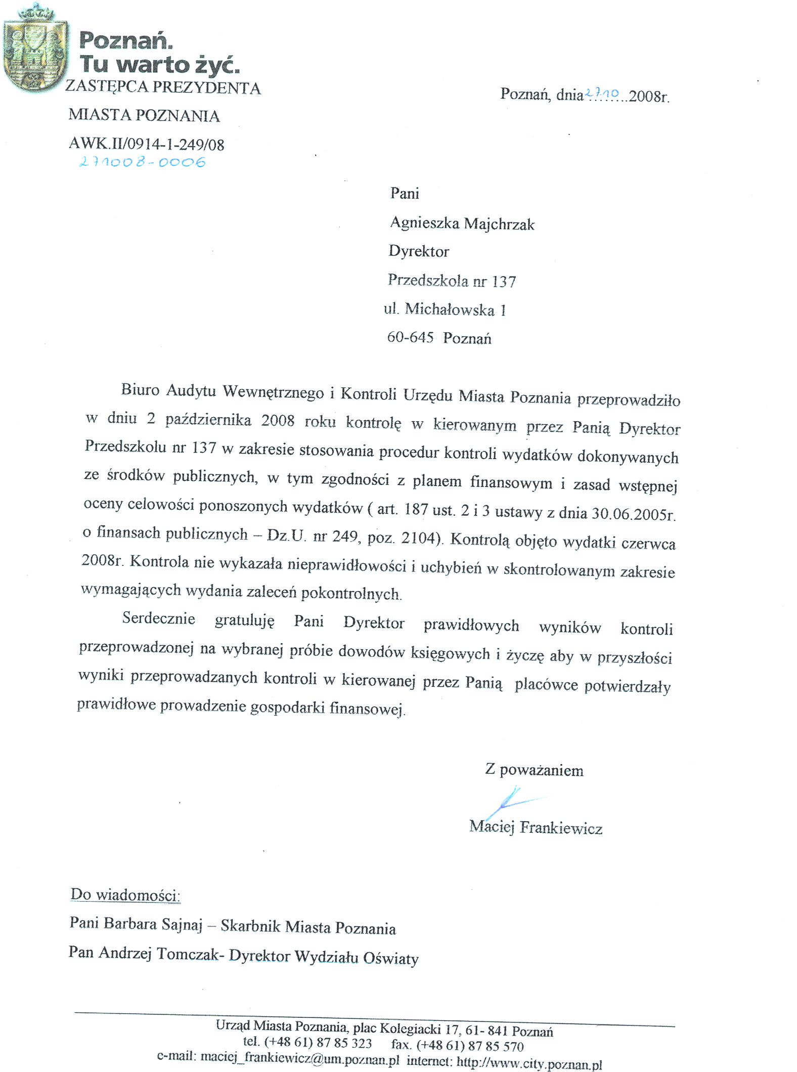 Informacja pobrana do BIP automatycznie z elektronicznego systemu zarządzania dokumentacją Urzędu Miasta Poznania.