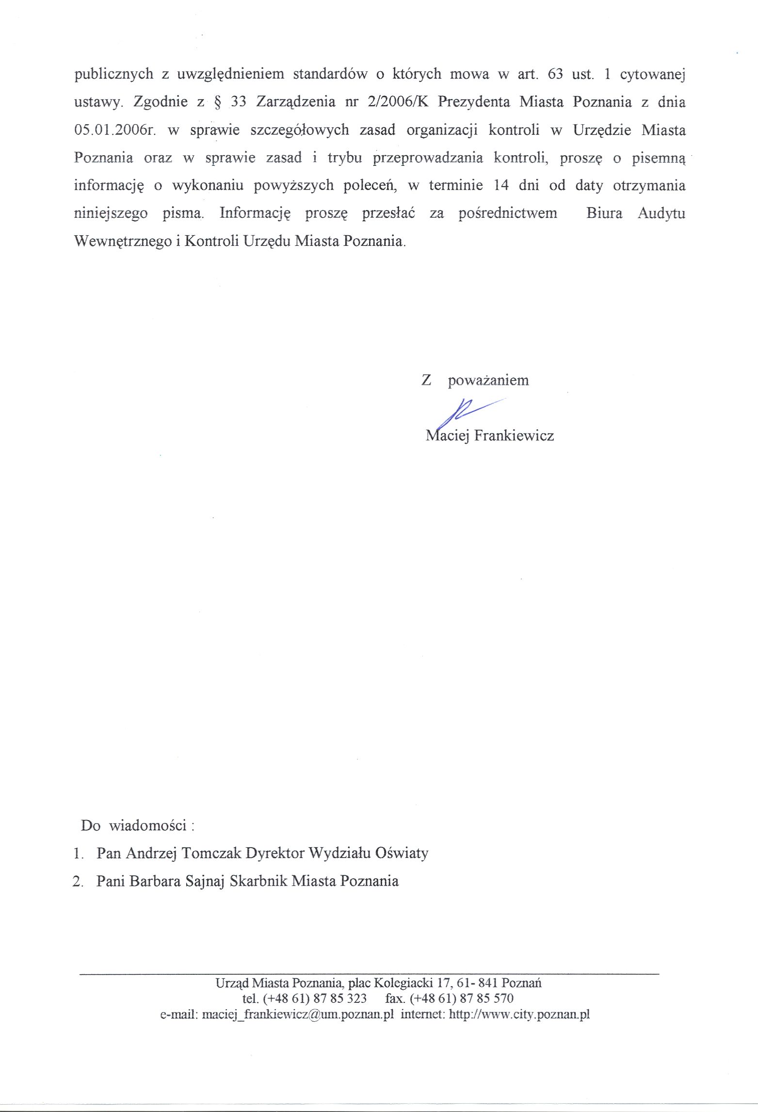 Informacja pobrana do BIP automatycznie z elektronicznego systemu zarządzania dokumentacją Urzędu Miasta Poznania.