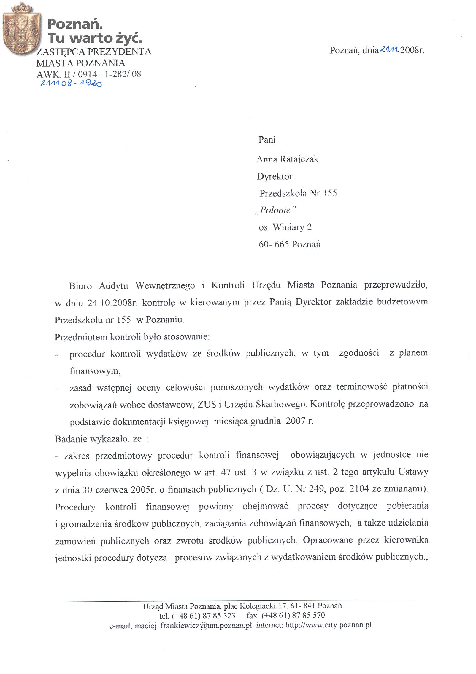 Informacja pobrana do BIP automatycznie z elektronicznego systemu zarządzania dokumentacją Urzędu Miasta Poznania.