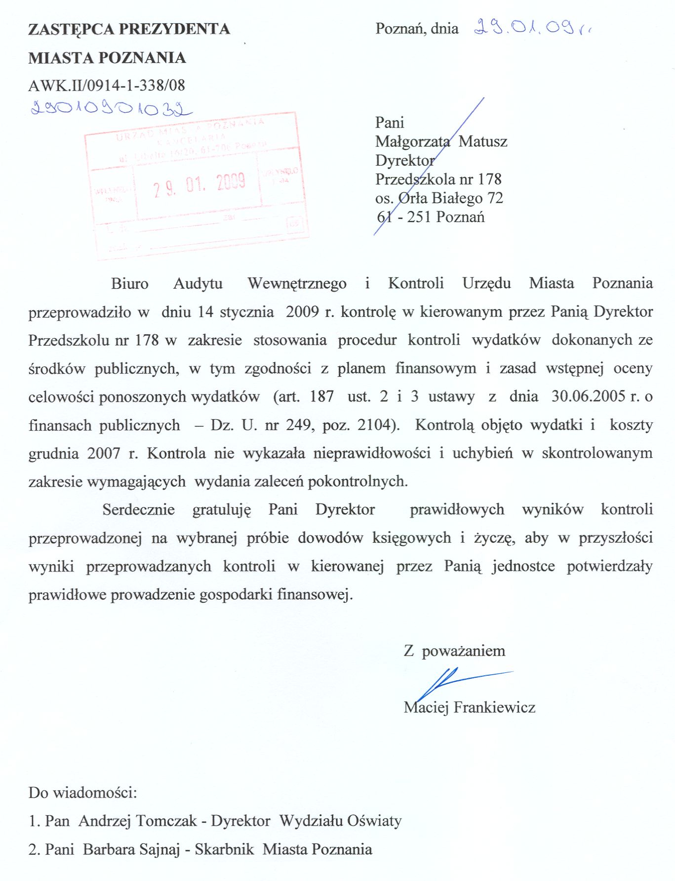 Informacja pobrana do BIP automatycznie z elektronicznego systemu zarządzania dokumentacją Urzędu Miasta Poznania.