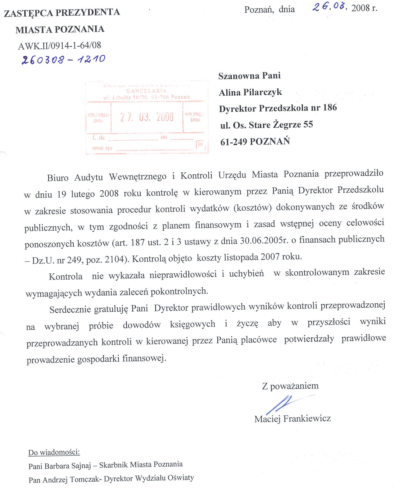 Informacja pobrana do BIP automatycznie z elektronicznego systemu zarządzania dokumentacją Urzędu Miasta Poznania.